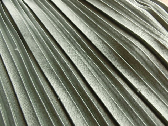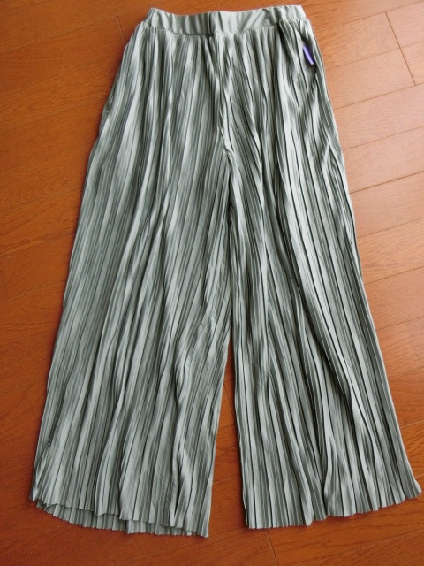 落ち着きのあるエメラルドグリーン色のプリーツパンツです。