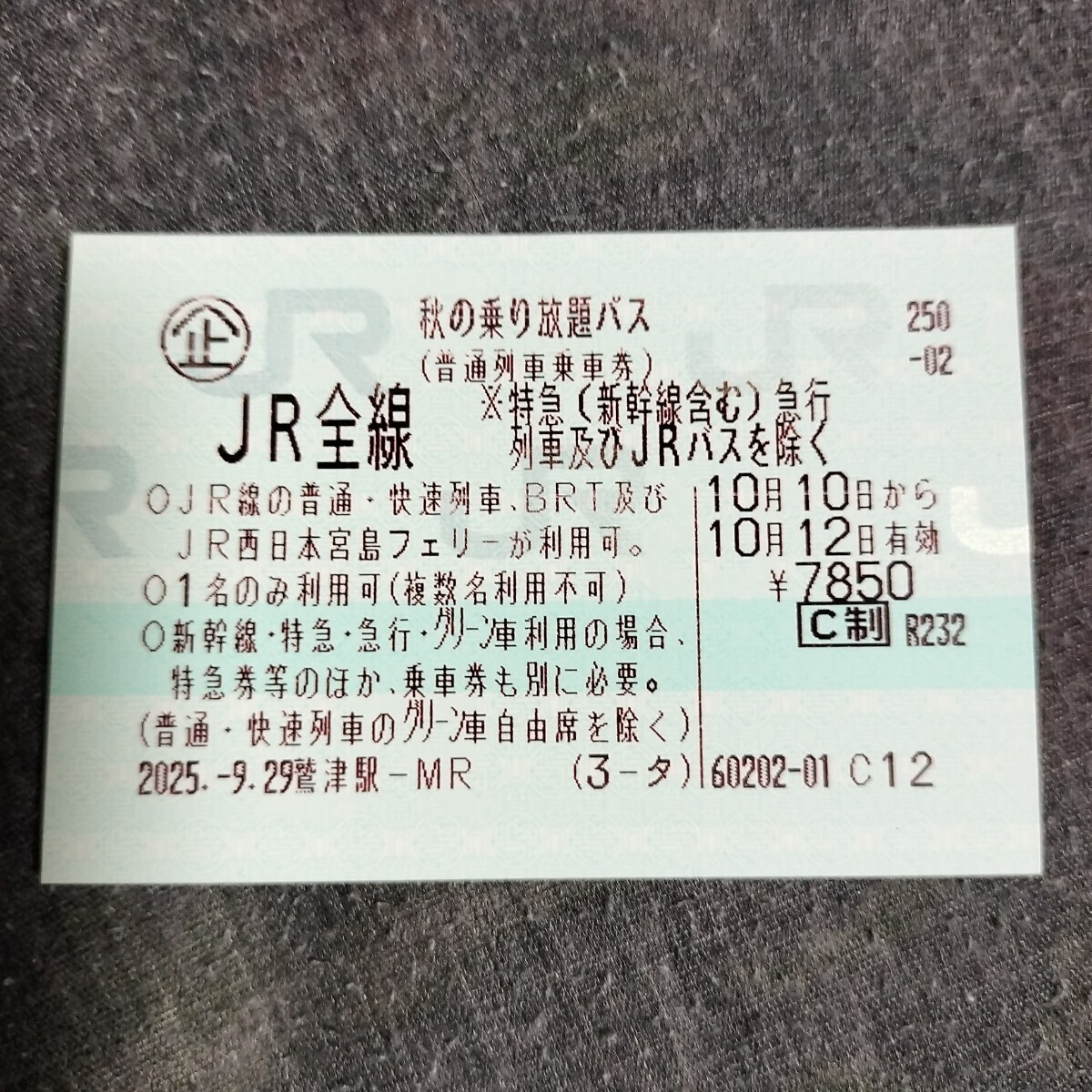 10月12日分です。10月11日に東海道線の新所原駅改札口出たとこ22時30分手渡しの条件です。
