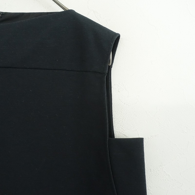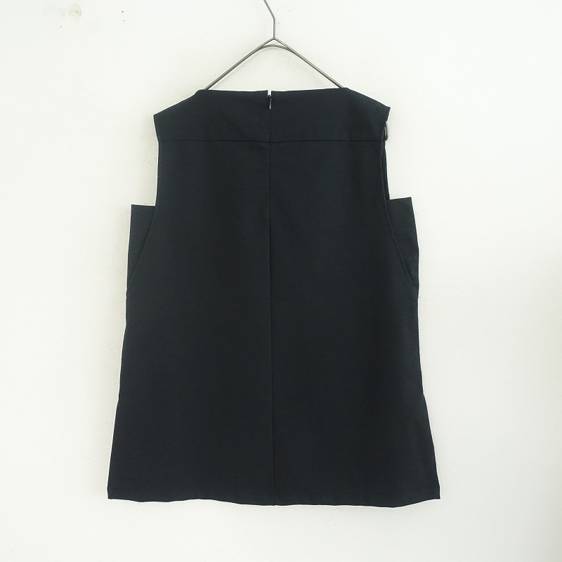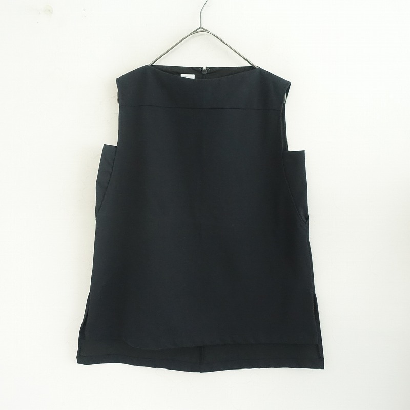 | nitcaのノースリーブブラウスです。カラーはダークネイビーで、伸縮性のある素材で仕立てられています。後ろファスナーで着脱できるプルオーバータイプです。 |