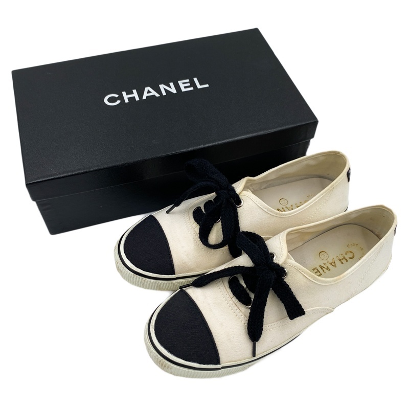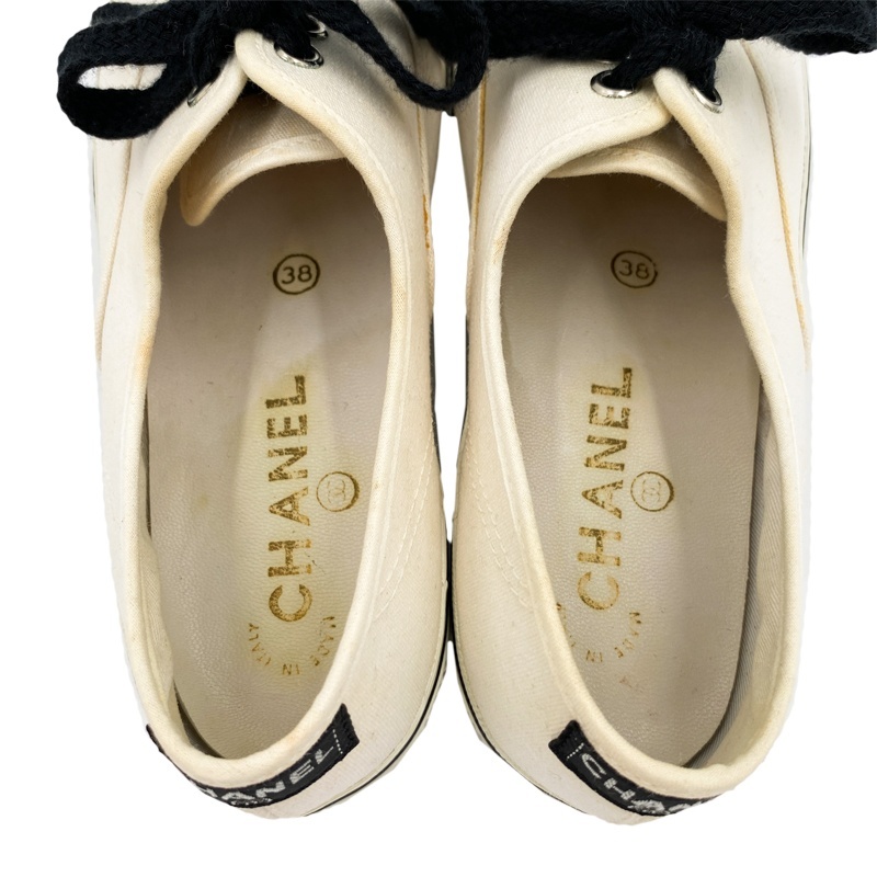 | 中古AB CHANEL シャネル キャンバススニーカー ホワイト×ブラック レディース #38 辻屋質店A3722 | |