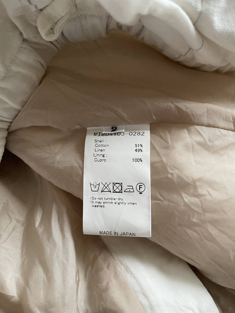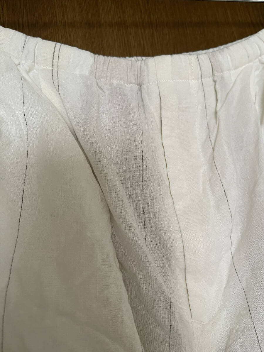 サイズ:2、平置きでウエスト約68~93cm(ゴム仕様)、股上約33cm、股下約18cm、裾幅約31cm、素人採寸のため多少の誤差はご了承ください