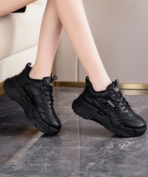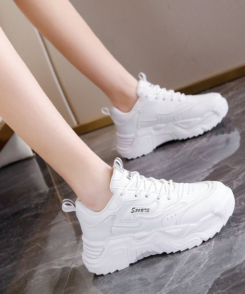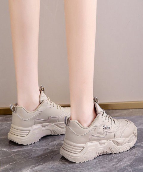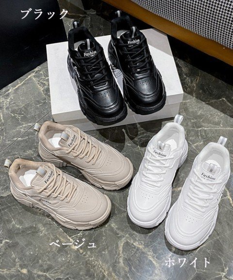 ボリュームスニーカー アウトドア 歩きやすいシューズ 通勤通学靴 履きやすい PUレザースニーカー カジュアルくつ 韓国