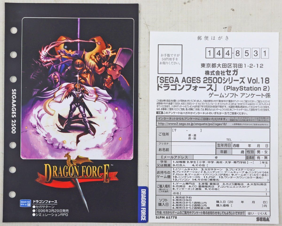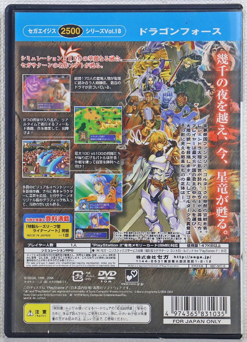 P◎中古品◎ゲームソフト『セガ エイジス2500シリーズVol.18 ドラゴンフォース』 プレイステーション2 PS2 SLPM-65778 SEGA | |