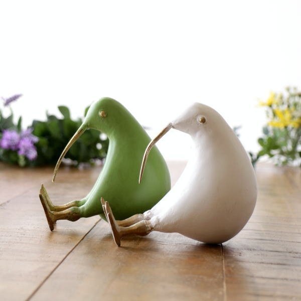 | こちらのページでは【Bカラー】のみの販売です ニュージーランドに生息する野鳥のキウイ 飛べない鳥で有名です 長い口ばしと丸い身体がとてもユーモラスな可愛さ 立った様子もすわった様子も愛らしく、 お部屋のアクセントとして目を惹きます アイボリーとカーキでカラフルになった キウイの木彫りの置物 親子のようにセットしたり 色違いで並べてもとても可愛い・・・。 商品名 : カラフルなキウイ木彫り S 商品番号 : kan6276 全体サイズ(cm) : 幅7×奥行11×高さ12 材質 : 天然木 アイアン(口ばし・脚・目) 生産国 : インド ※天然木仕様で1つ1つ手作り品のため所々多少アバウトな面がございます。(擦り傷、色むら、立たせた場合のがたつき、目の付け位置ずれなど)商品の味わいとして予めご理解いただきご検討ください ※大サイズとのセット販売ではございません ※ディスプレイによる色の違いはご了承下さい |