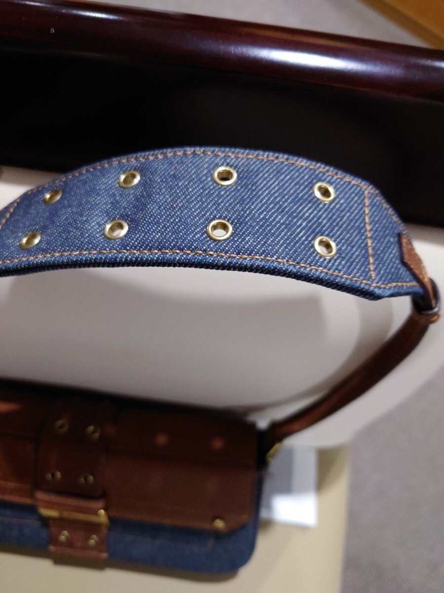 デニムとブラウンレザーが気に入って購入しましたが2〜3回使用したバッグになります。