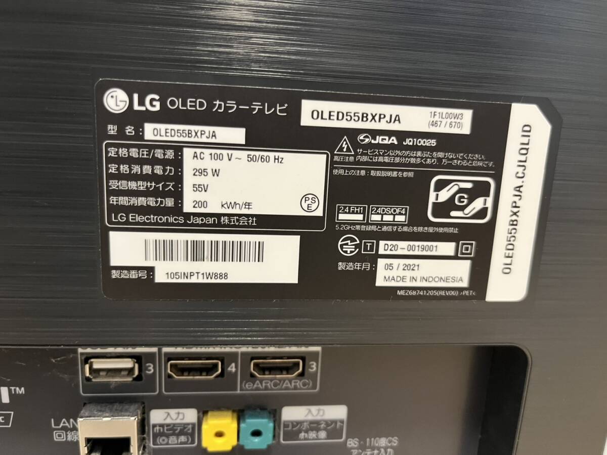 LGエレクトロニクス 有機ELテレビ OLED55BXPJA の出品になります