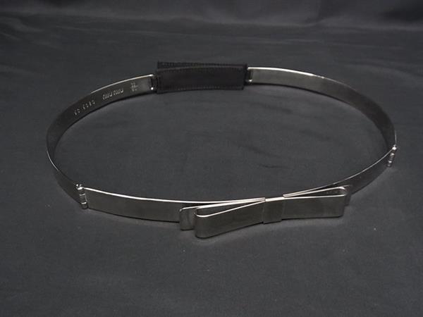 1円 miumiu ミュウミュウ シルバー金具 リボン ベルト 表記サイズ 32/80 レディース シルバー系×ブラック系 BQ1503