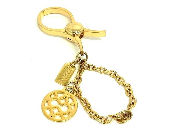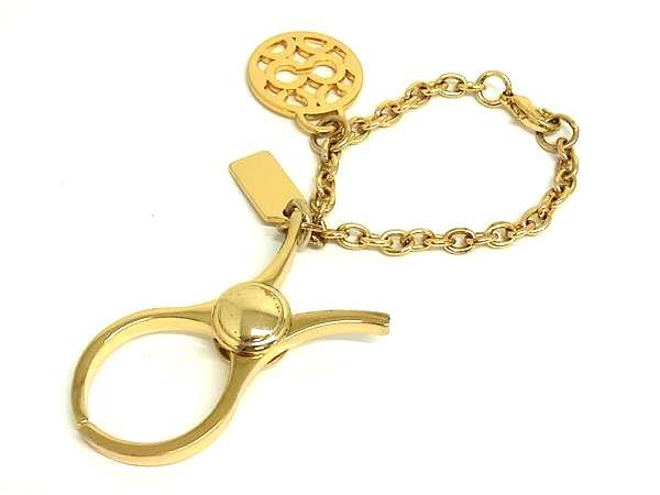 ■美品■ COACH コーチ オプアート グローブホルダー 手袋ホルダー バッグチャーム キーホルダー レディース ゴールド系 DJ7002