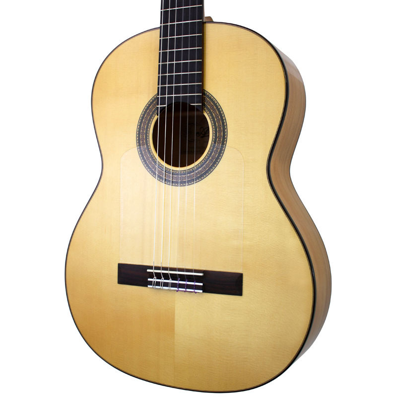歯切れが良く、バランスのとれたサウンドが魅力。表板の演奏傷を防ぐゴルペ板も装備しています。