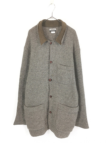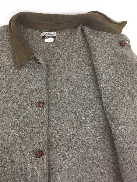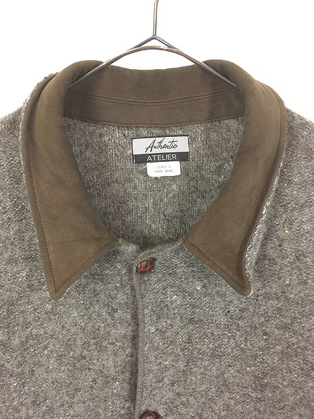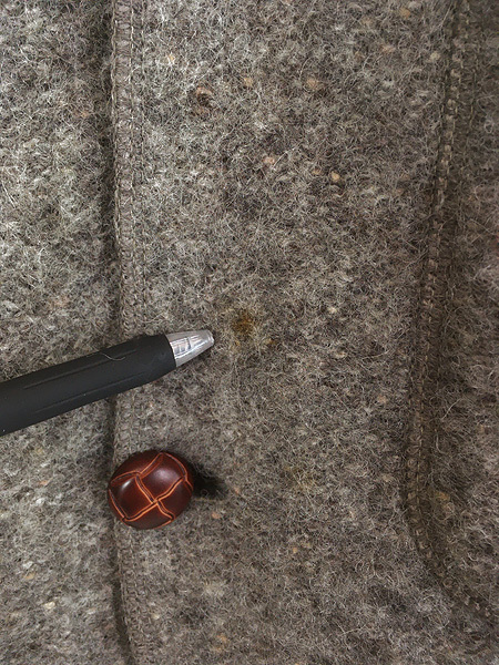 ツイードルックのフランネルウール・襟内側レザー。