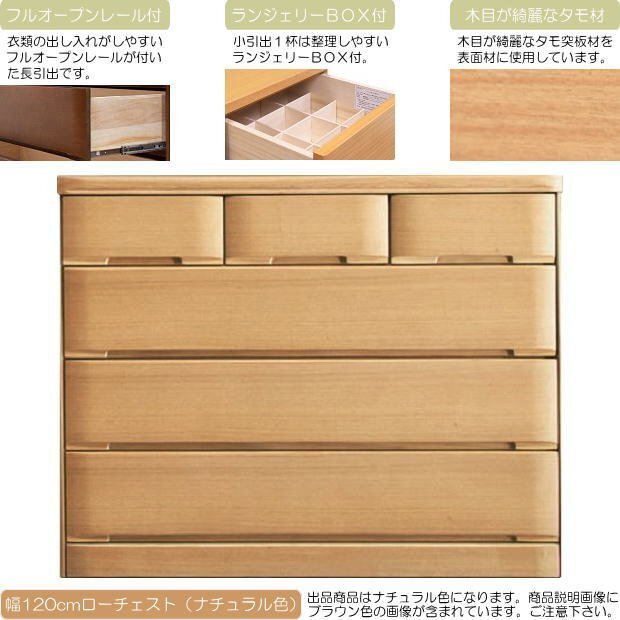 | 【商品名】 | スタンダードデザインの木目が綺麗なタモ材仕様幅118cmローチェスト (ナチュラル色) |