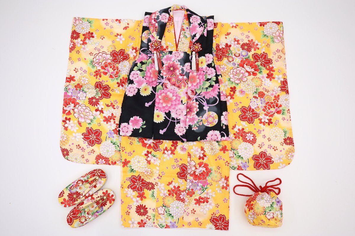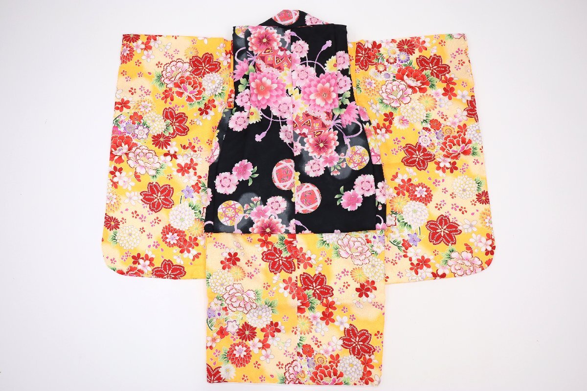 黄色系に染め上げた、可愛らしい七五三 女児(3歳用)着物です。
