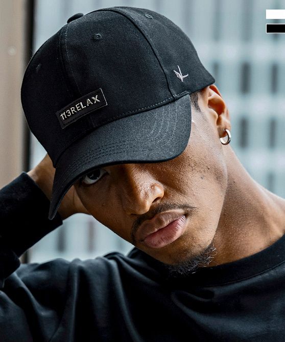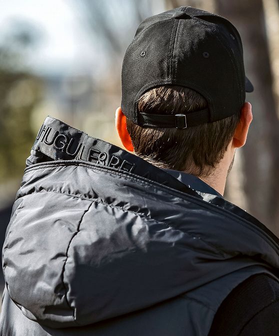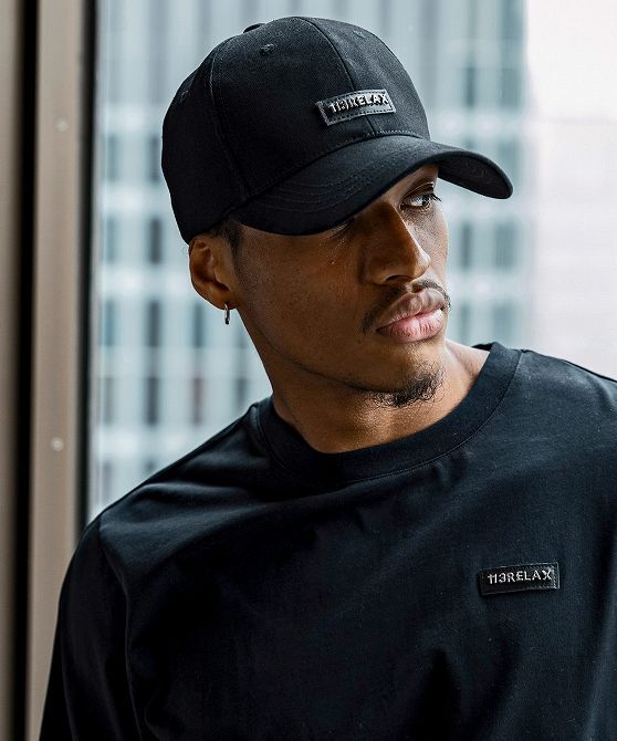 レザープレートにメタルロゴを立体的に配置した6パネルキャップ。