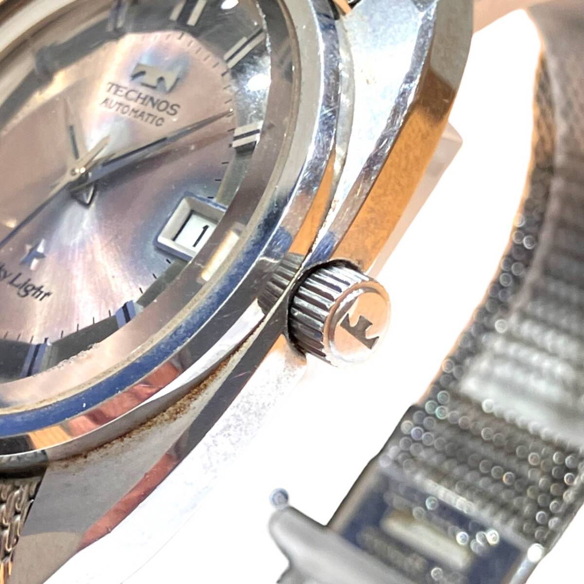 TECHNOS テクノス sky Light スカイライト 3針 デイト 自動巻き 腕時計 シルバーカラー 稼働品 |