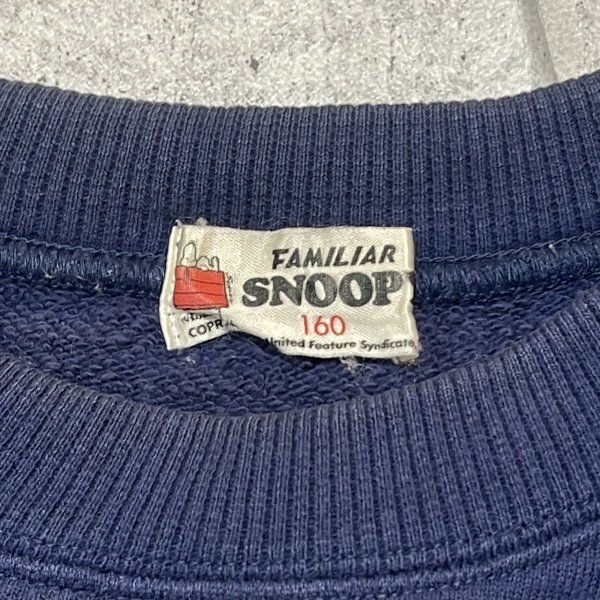 FAMILIAR SNOOPY スウェット ラグラン ファミリア スヌーピー  トレーナー ネイビー ビッグロゴ デカロゴ プリント サッカー 石瀬7507 ピーナッツ キッズ160 パイル裏地