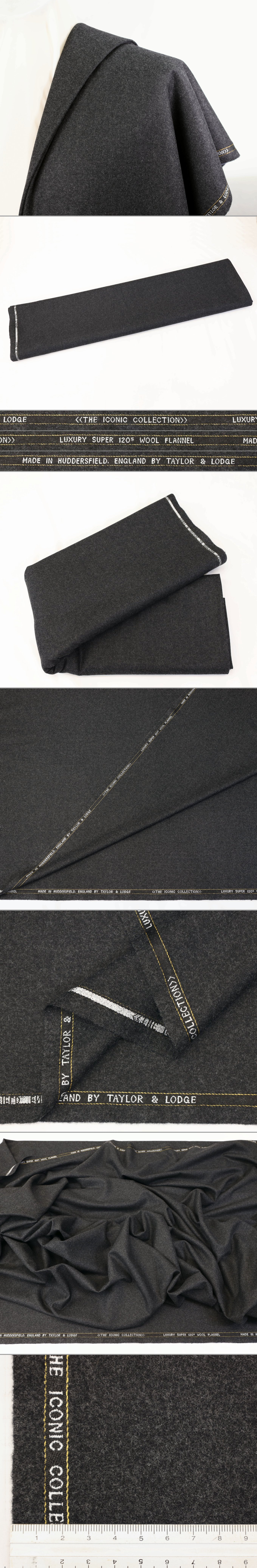 ■テーラーロッジ社「アイコニック コレクション」極上s120の最高級フランネル生地・定番グレーの無地・長さ3.15m