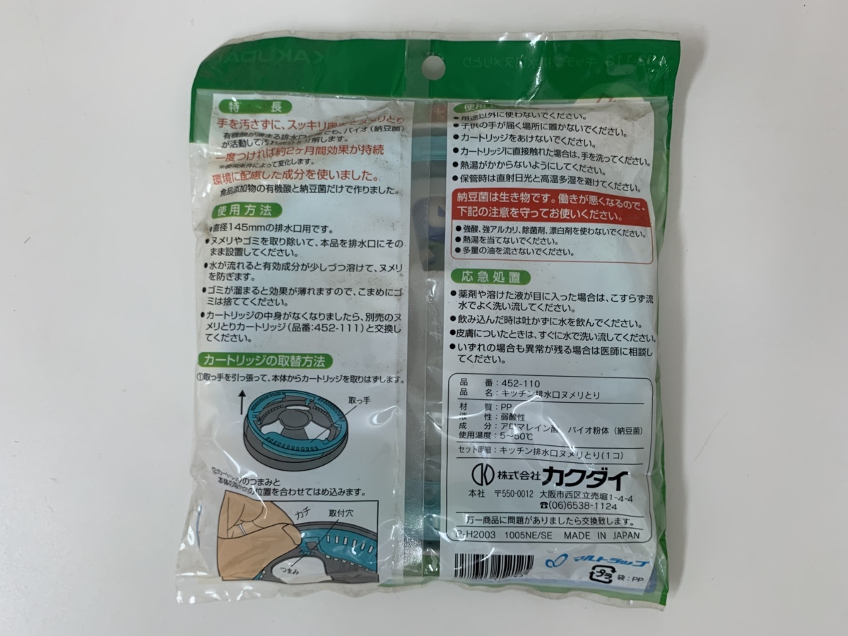 ☆レターパック発送☆KAKUDAI カクダイ キッチン排水口ヌメリとり 品番452-110 直径145mm バイオ/有機酸/ヌメリ対策