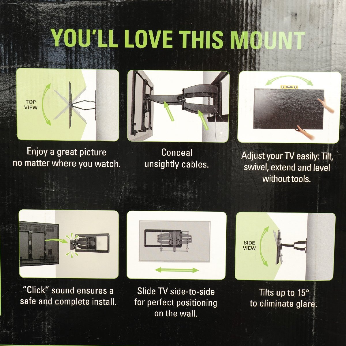 ●収納時で約83mm、引き出し時で約710mm、傾斜左右首振、水平レベル調整動作が可能なフルモーションマウントです。
