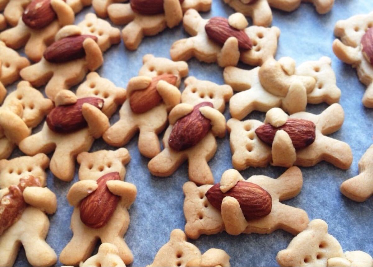 アーモンドをギュッと抱きしめるくまさんがとてつもなく可愛いと話題になった、クッキー型です。