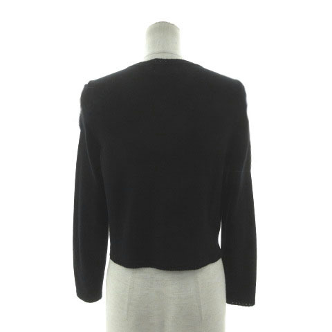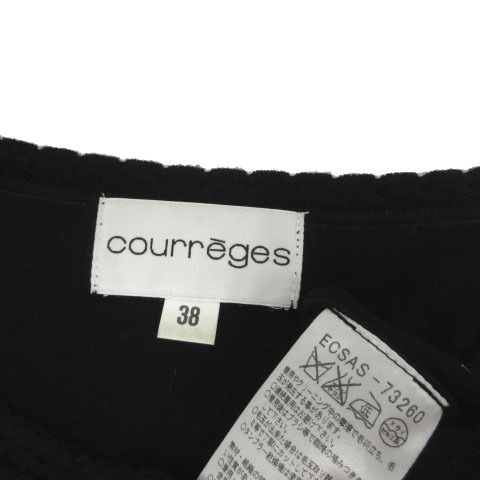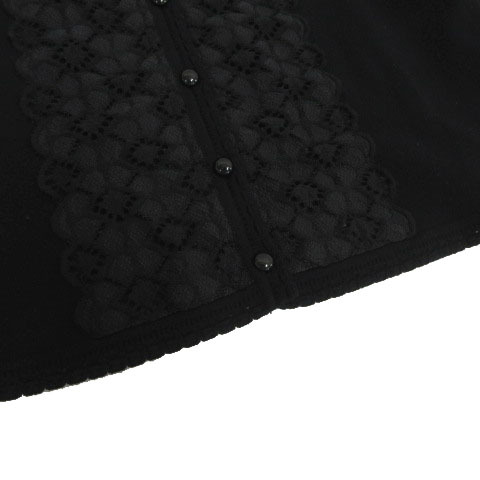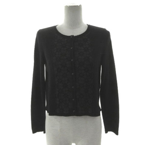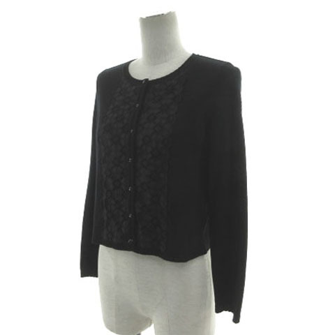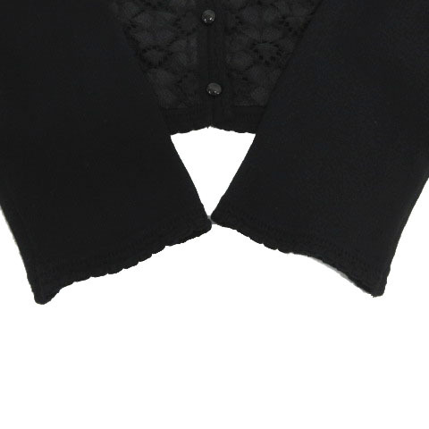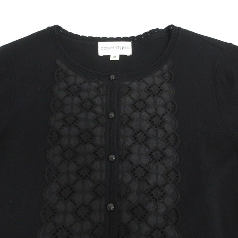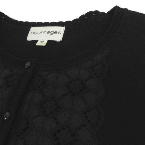 クレージュ courreges レーヨンブレンドクルーネッククロップドカーディガン ECSAS-73260 スカラップ 刺繍切替え ブラック 黒 38