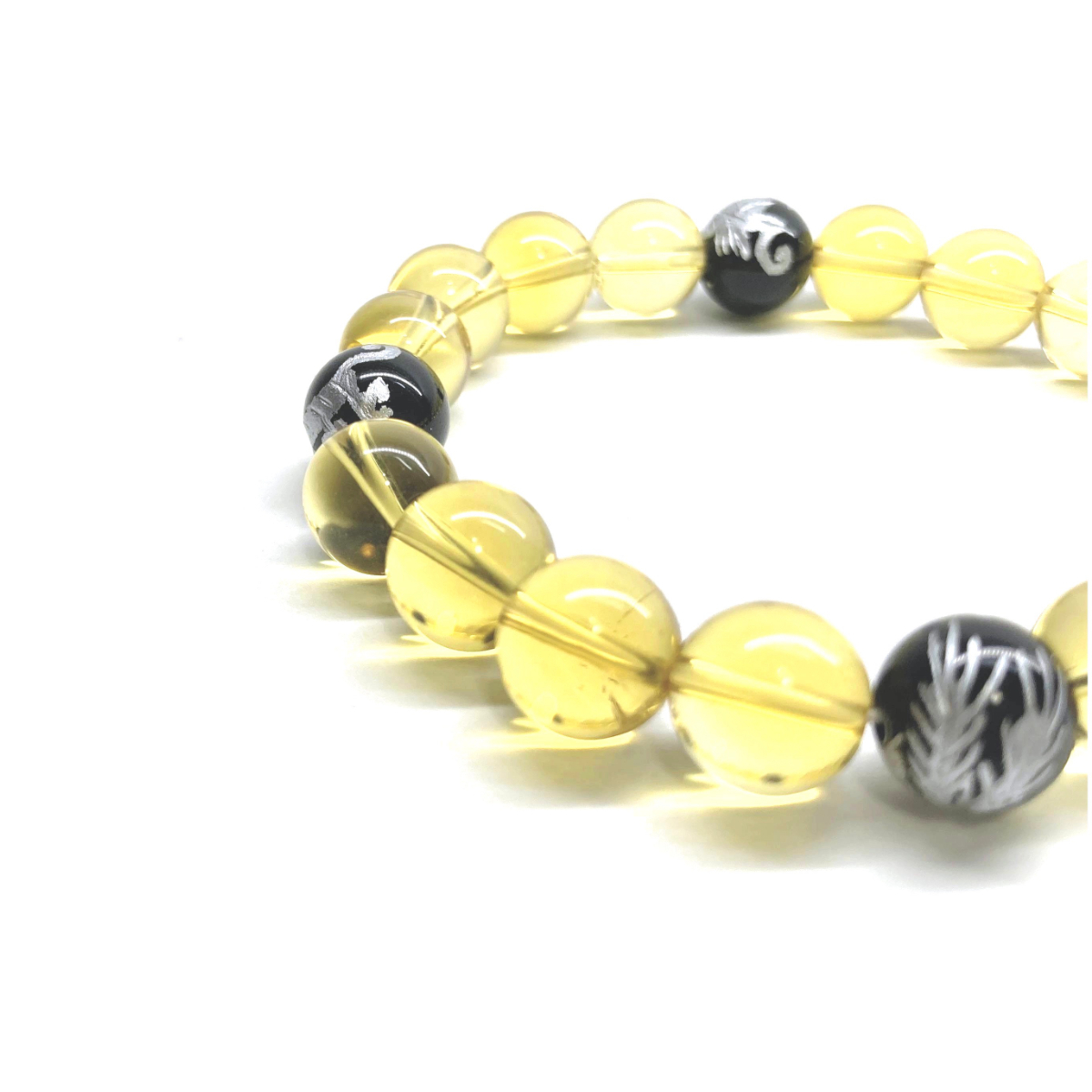 10mm 四神獣銀彫オニキス×シトリン パワーストーン ブレスレット天然石 運気上昇 開運 金運 恋愛運 青龍 白虎 玄武 朱雀 ☆