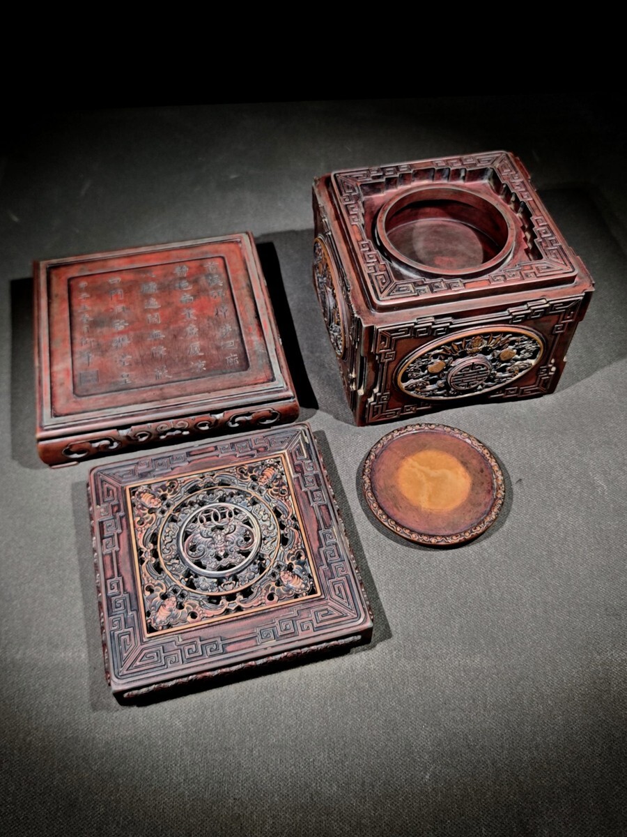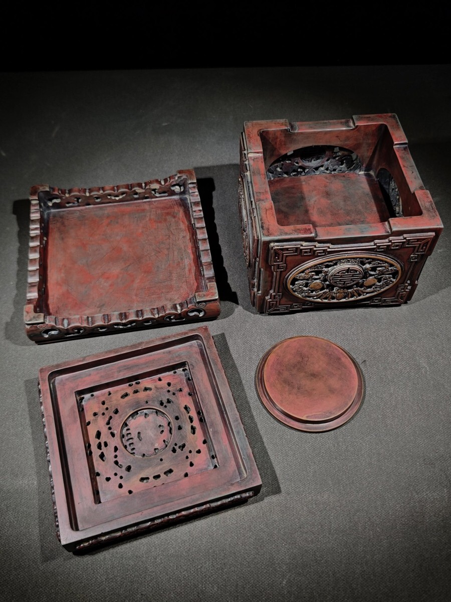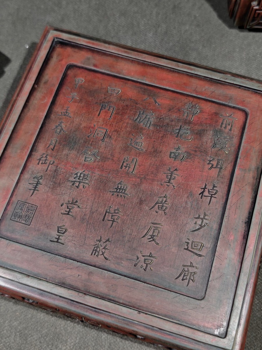 「松花石硯 福壽双全文房暖硯 朱硯 嘉慶宸翰銘 清時代」手彫り 文房四宝 書道具 中国古美術 旧蔵出