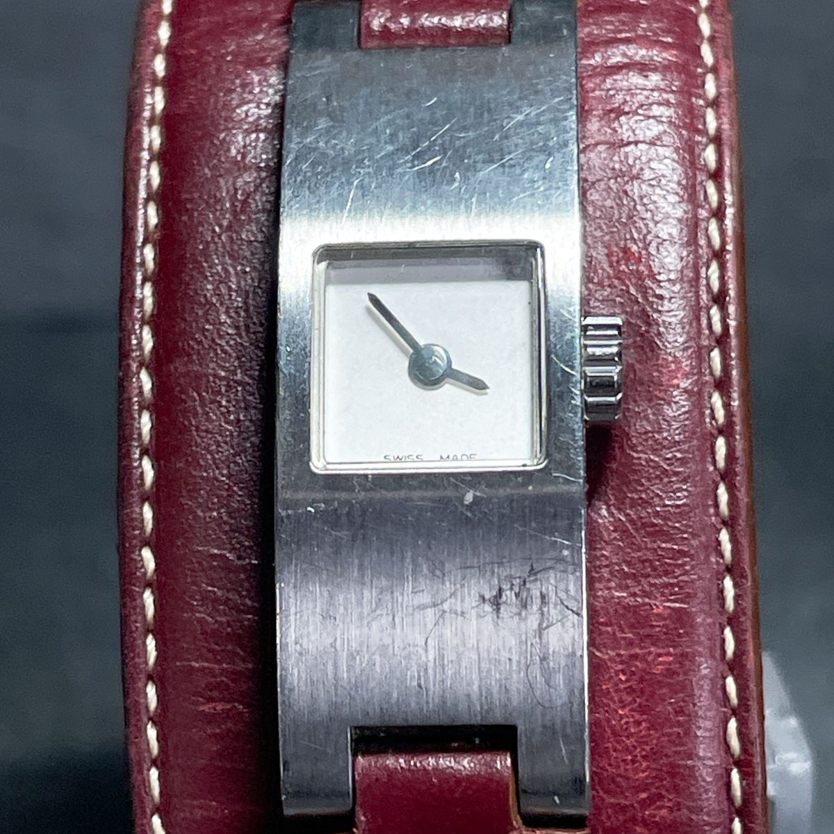 COACH コーチ 0169 腕時計 アナログ クオーツ ホワイト文字盤 スクエア レザーバンド ステンレススチール レディース 動作確認済み