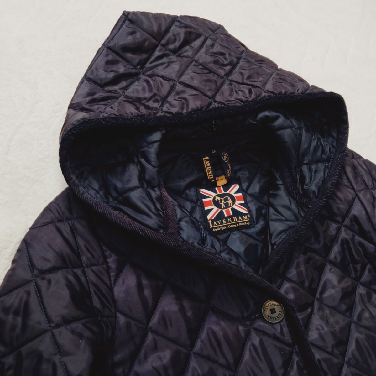 LAVENHAM*ラベンハム*キルティングコート*イギリス製*サイズ38*フーデッド*紫*レディース*ロング*パープル