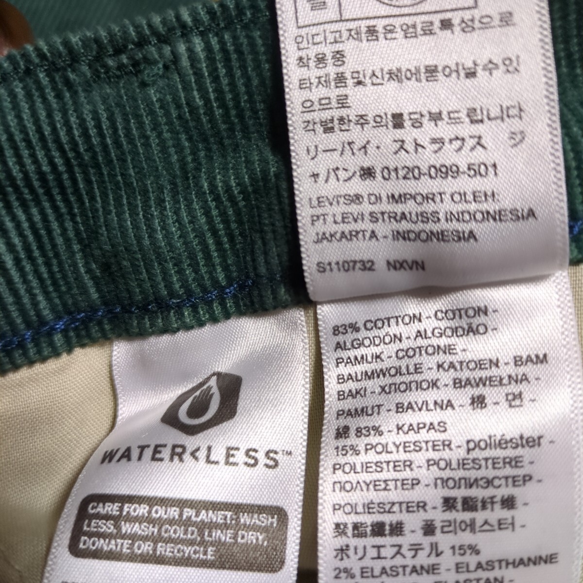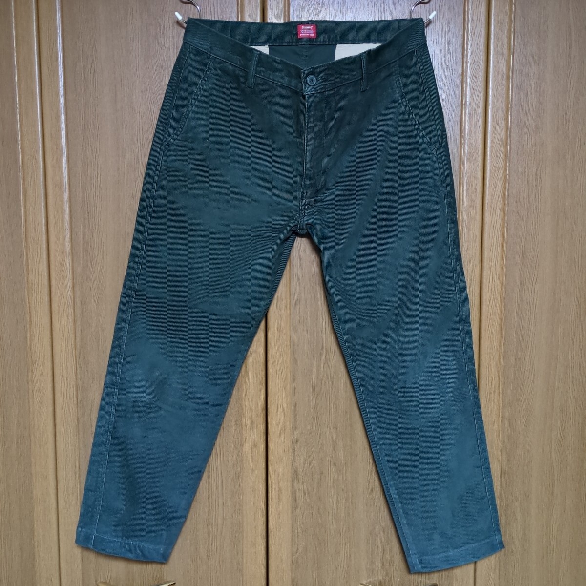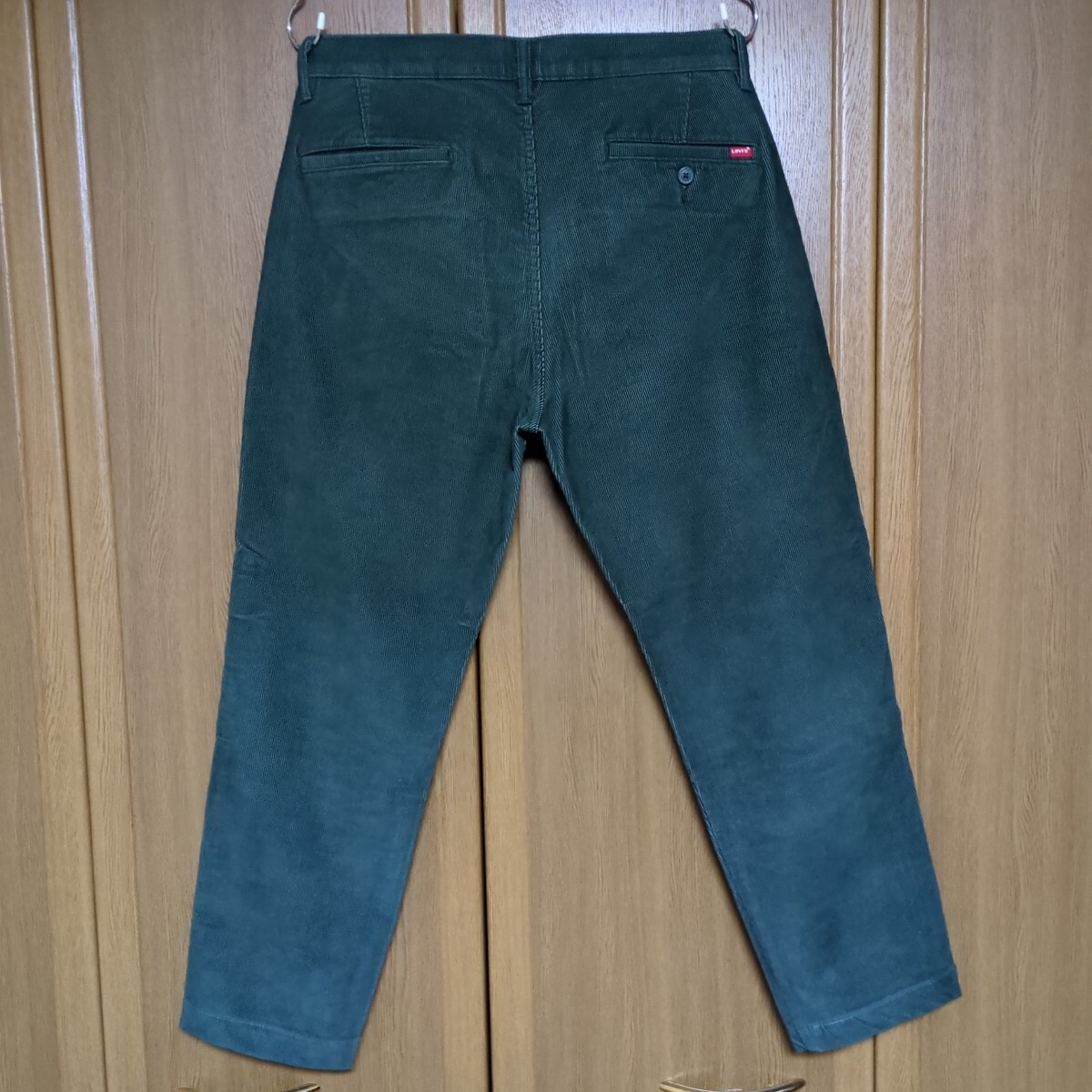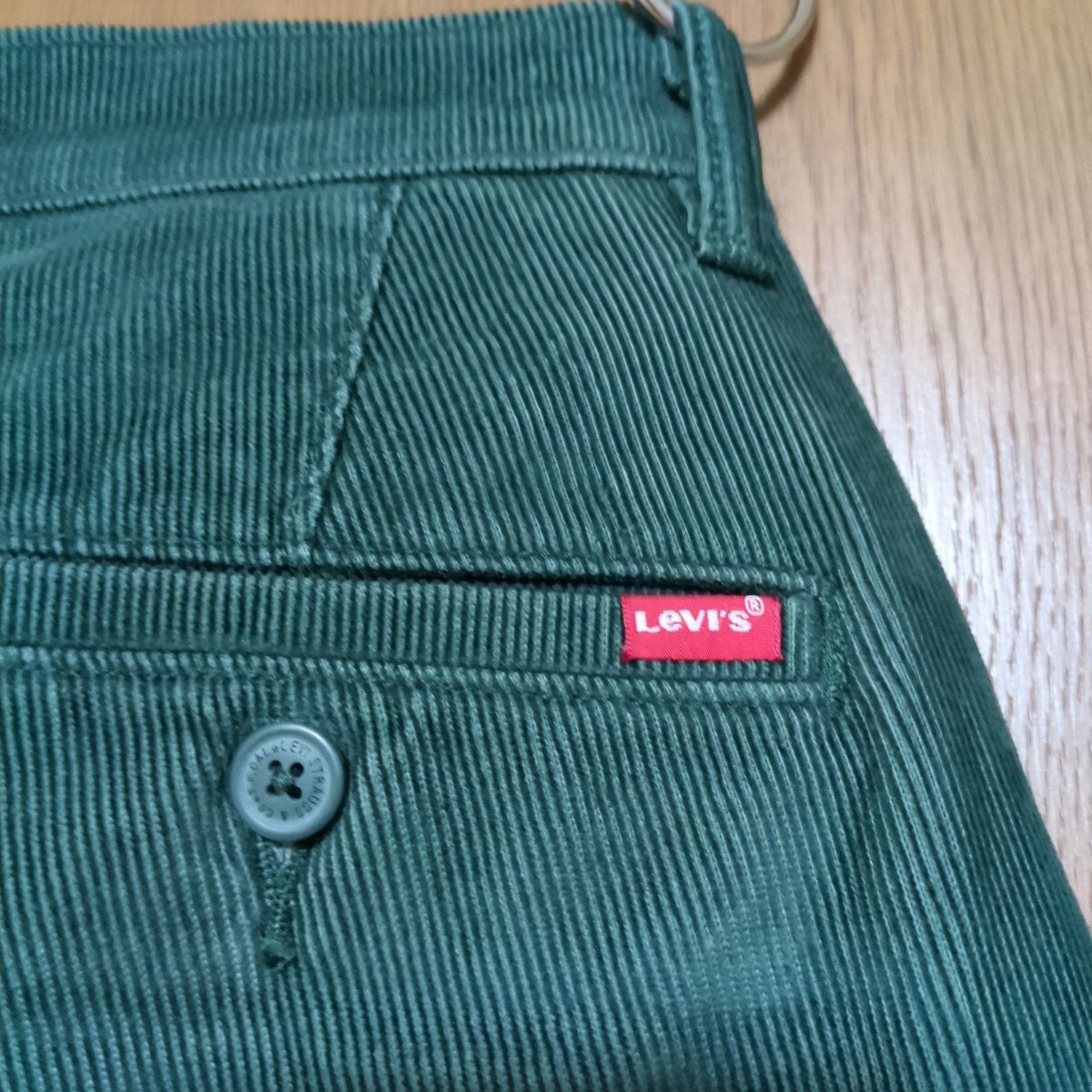 リーバイスのグリーン系のコーデュロイパンツです。若干の使用感ございますが、特に大きなダメージも無く、まだまだ着用して頂けるかと思います。あくまでUSED品になりますので、神経質な方、古着のご理解のない方、入札お断りです。メーカーサイズ表記W34で、平置き採寸で、ウエスト46センチ、股下67、5センチ、前股上28センチ、総丈(サイドで計測)95センチ、太ももあたり28センチ、裾幅19センチです。素人採寸ですので多少の誤差はお許しください。