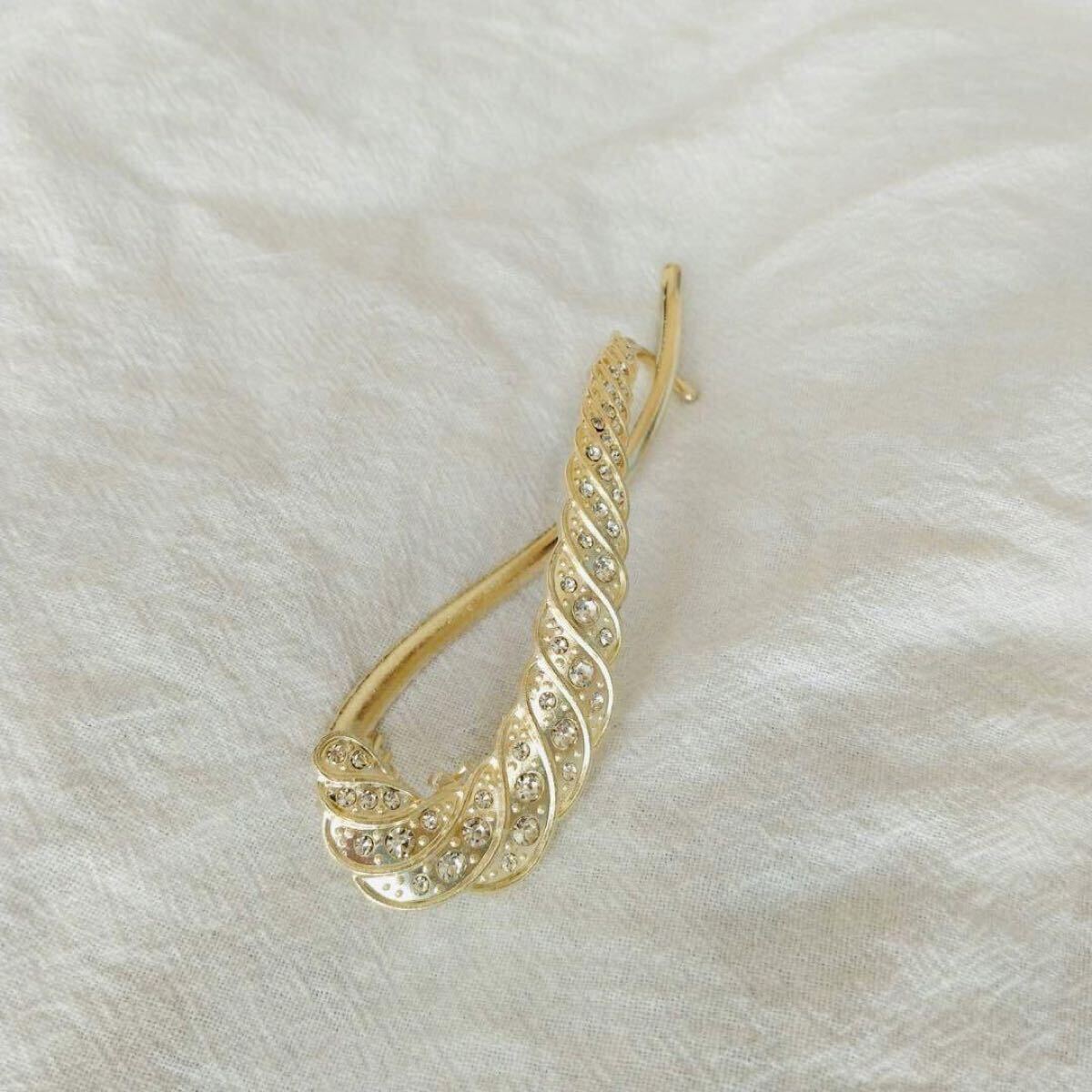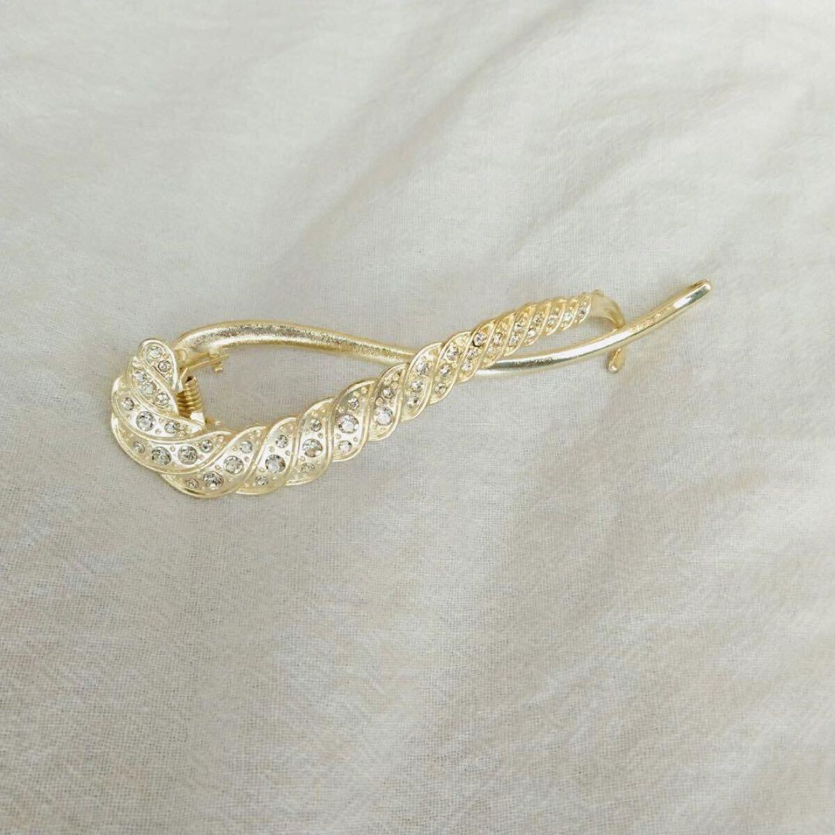 ・ツイストしたデザインに、キラキラと輝くラインストーンがあしらわれており、上品でエレガントな印象です。