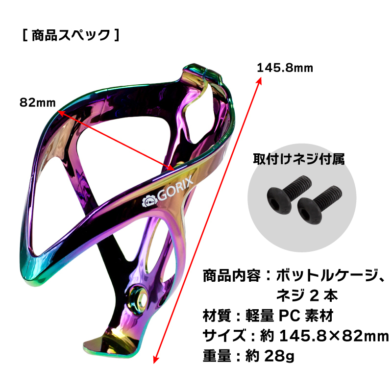 快適なサイクリングに必要な水分補給のボトルに欠かせないボトルケージ(ドリンクホルダー) 自転車に取り付ける事でこまめな水分補給が可能になります。 自転車での通勤通学やロングライドに。 人気のオイルスリックカラー! ロードバイクからクロスバイク、ミニベロ、MTBに! [鮮やかなカラー] 魅惑でホットなカラー、オイルスリックが 自転車を洒落た感じに仕上げます。 [重さわずか28g] 超軽量のボトルケージは自転車の重さが気になる人にも最適 [高品質のポリカーボネート] 伸縮性と耐久性を兼ね備えたタフなボトルケージです。 色褪せしにくい表面。 [V字型デザイン] ボトルをかかえるようなV字デザイン。 綺麗な曲線でボトルケージをすっきりみせます。 [ホールド] ボトルはもちろん、ツールケースなどをしっかり 保持します。 商品内容ボトルケージ、ネジ2本 サイズ約145.8×82mm 正味重量約28g 材質軽量PC素材 《ご注意》 ・商品は入荷によりキズがある場合があります。 ・保証対象外になりますのでご了承お願い致します。 ・ディスプレイ環境により実物と色が異なる場合が有ります。 ・入荷時期により予告無く一部仕様変更する場合が有ります。 |