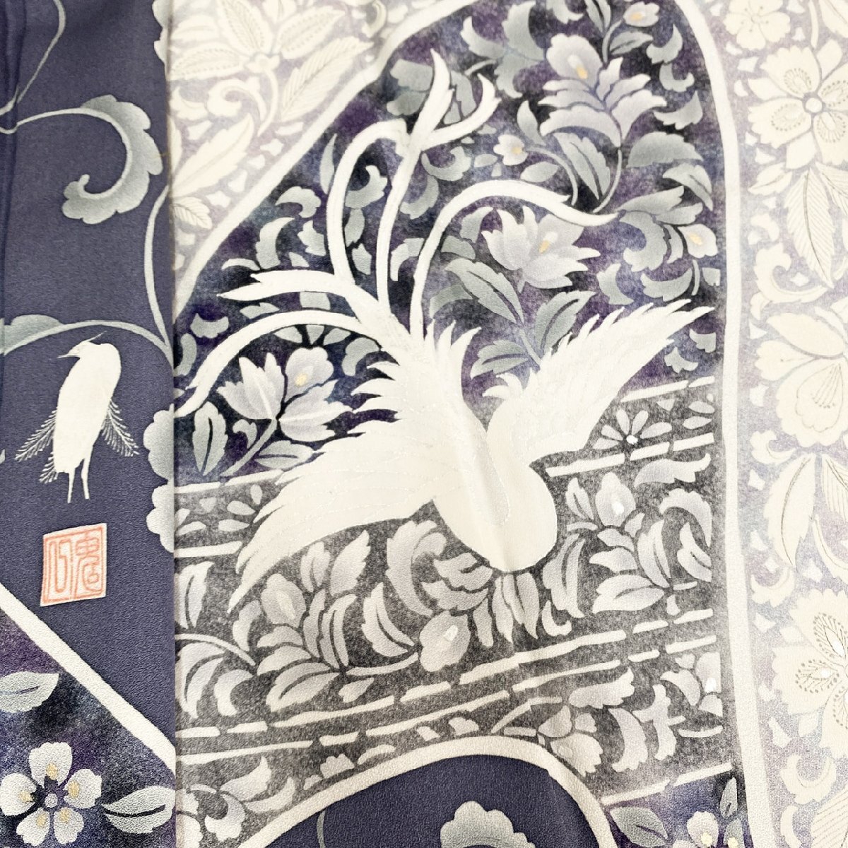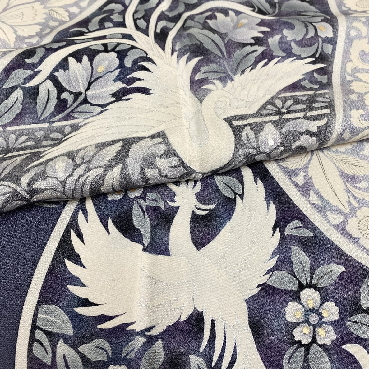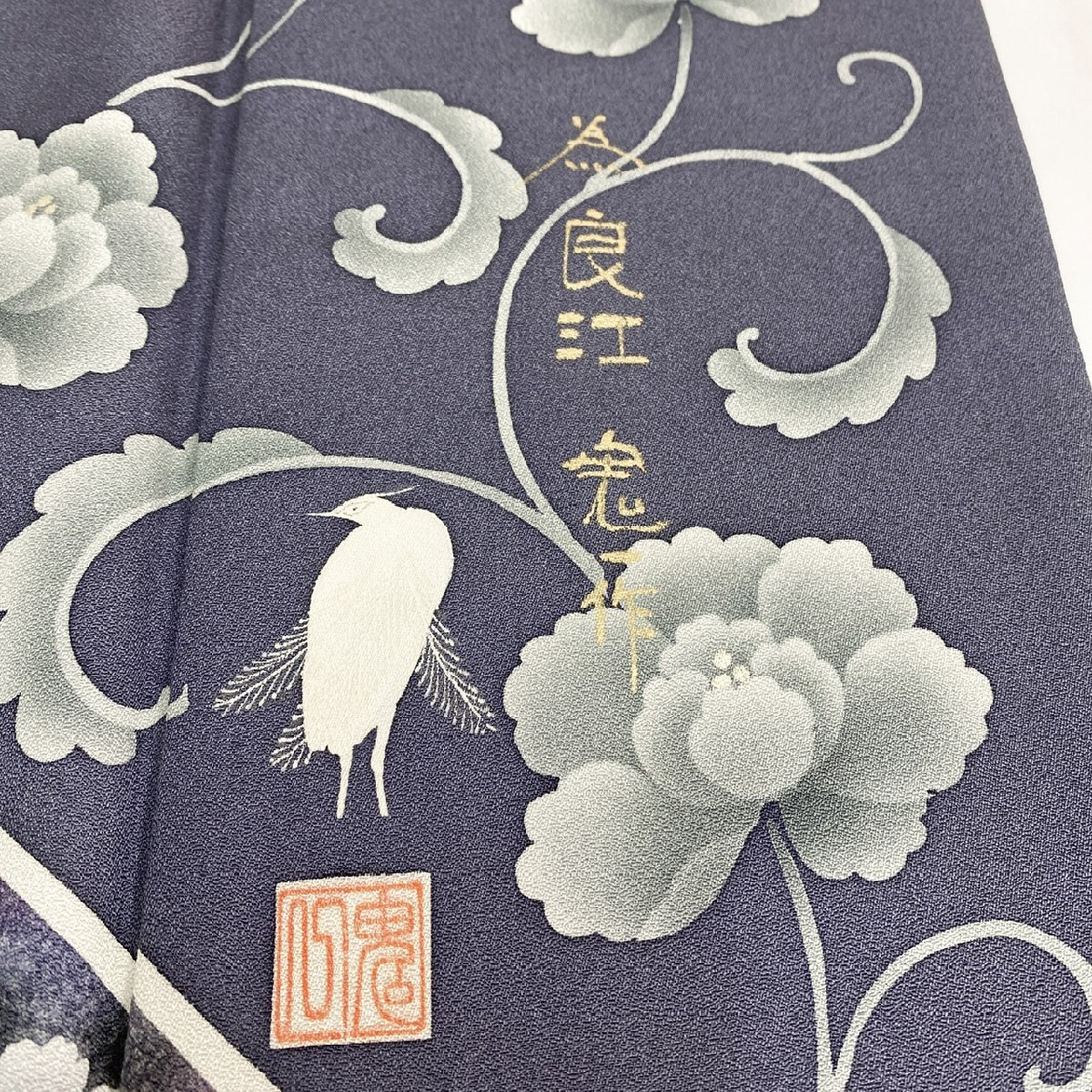 着物月花 菅有鬼一 装飾花鳥文様 訪問着 正絹 共八掛 為書き パールトーン加工 ki6151