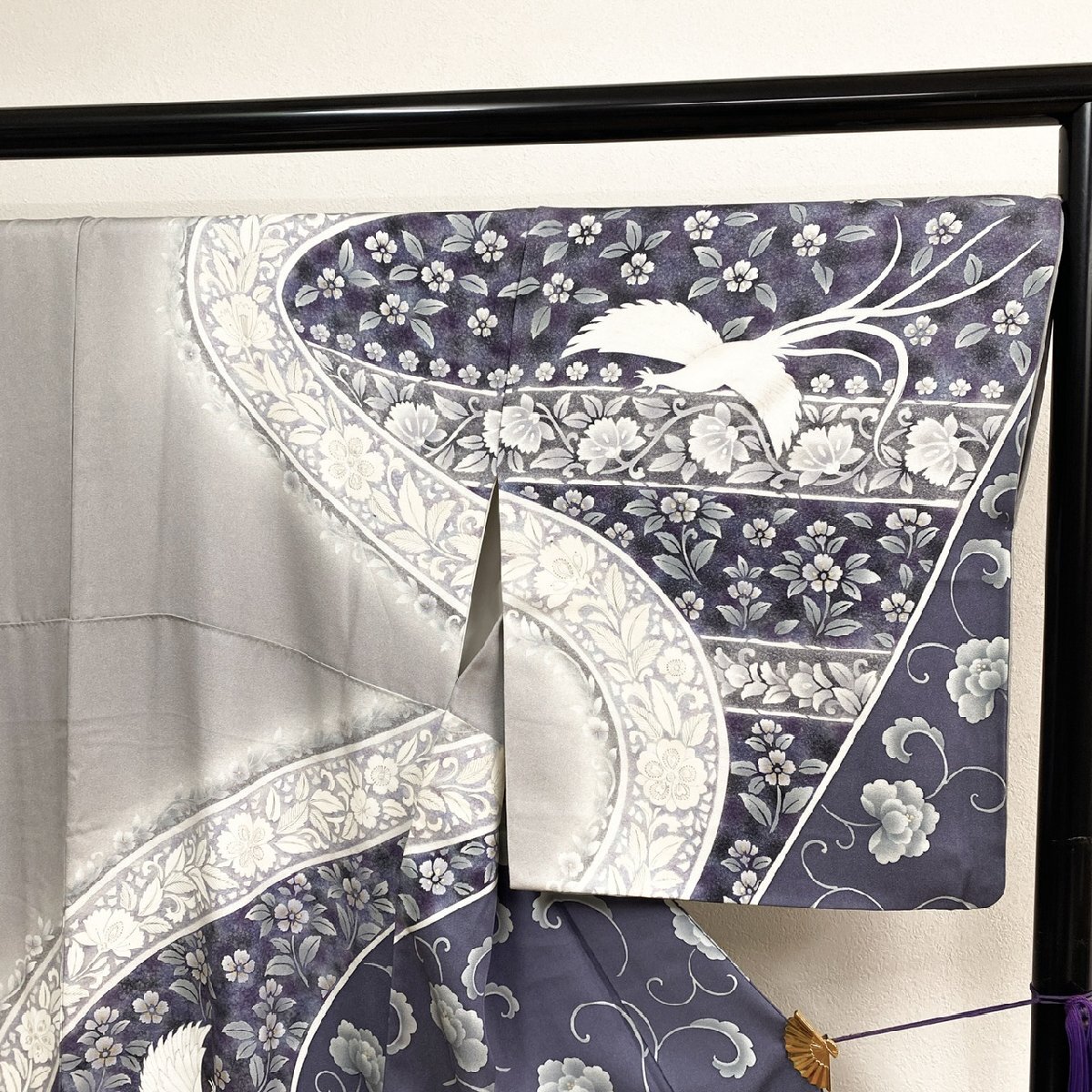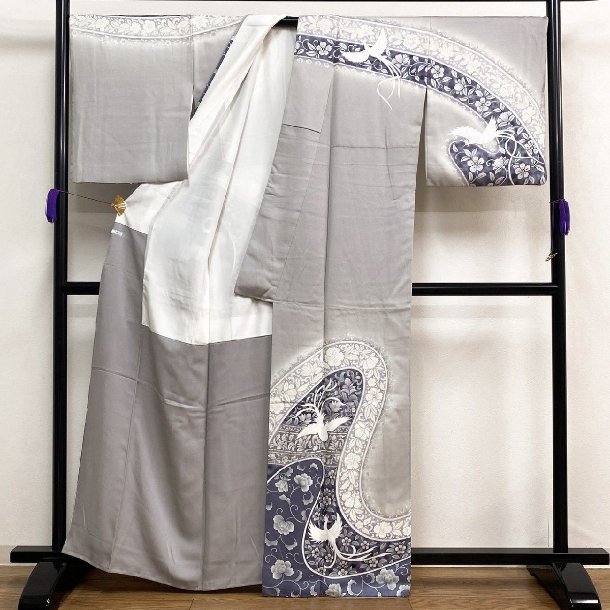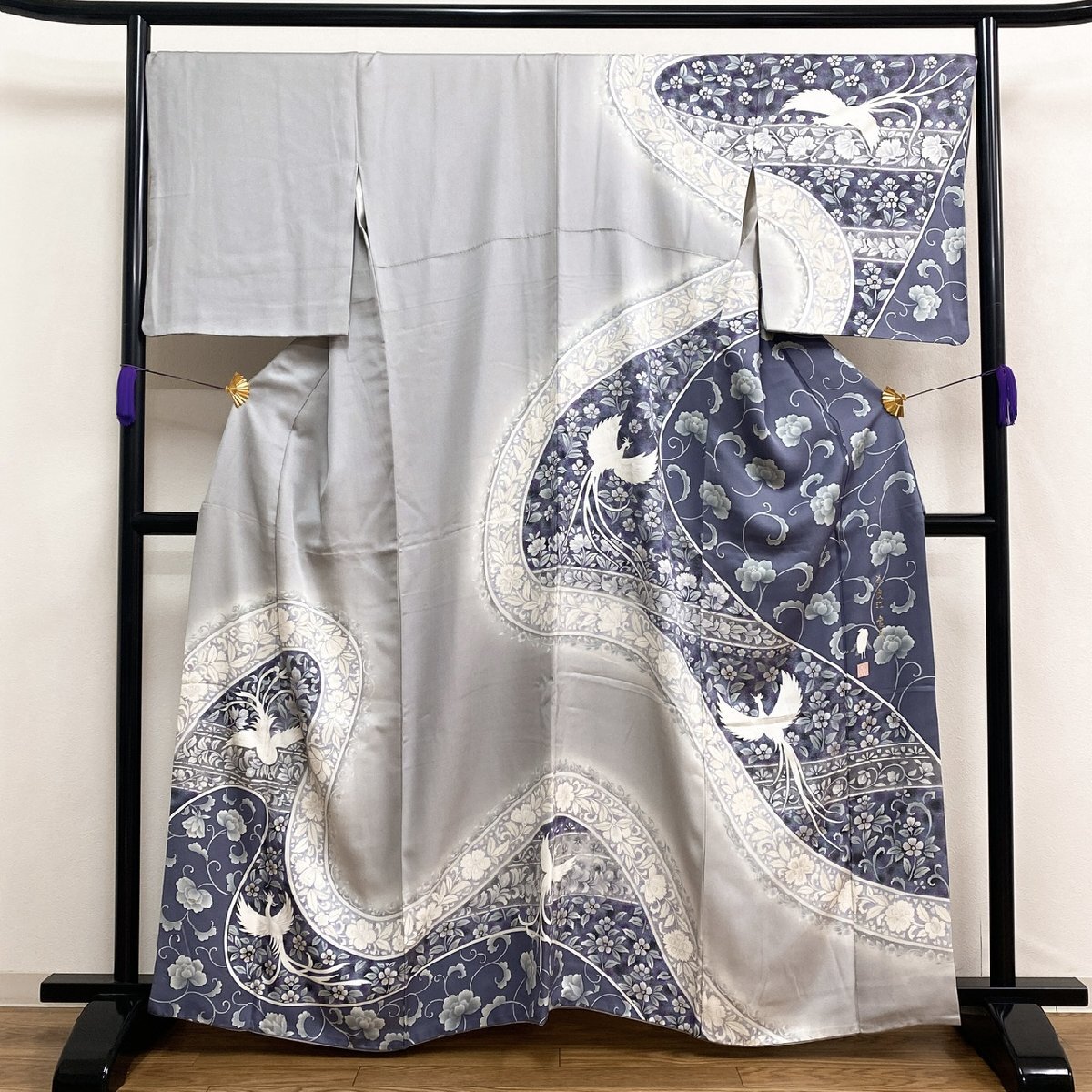 着物月花 菅有鬼一 装飾花鳥文様 訪問着 正絹 共八掛 為書き パールトーン加工 ki6151