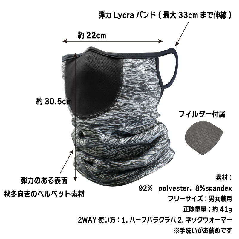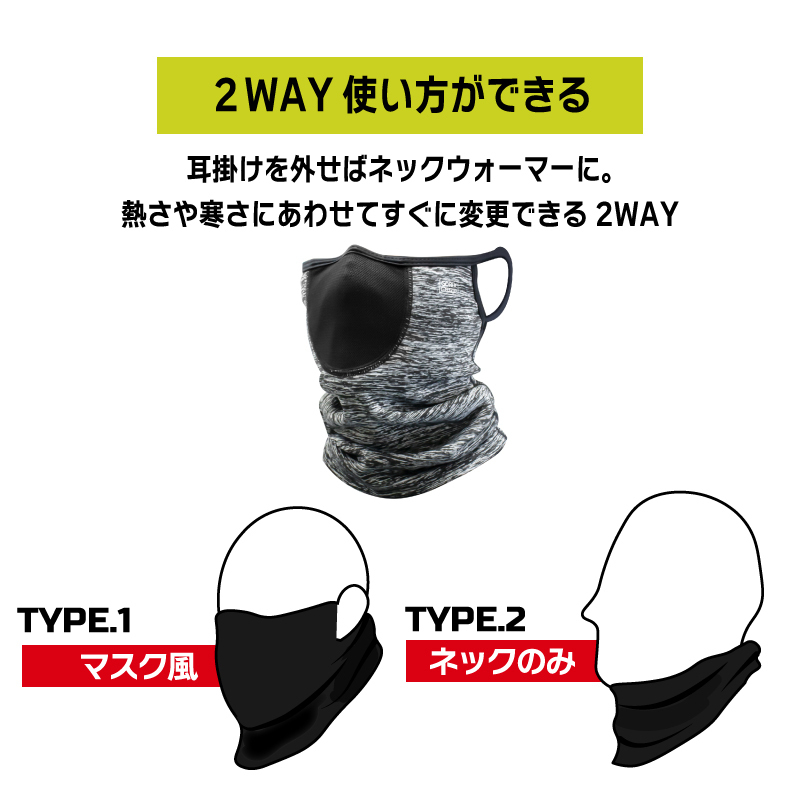 スポーツなど冬の冷たい雨風から顔をガードするマスク。 |