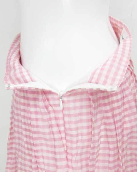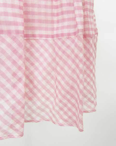 ピンクのチェック柄とプリーツデザインが可愛らしい