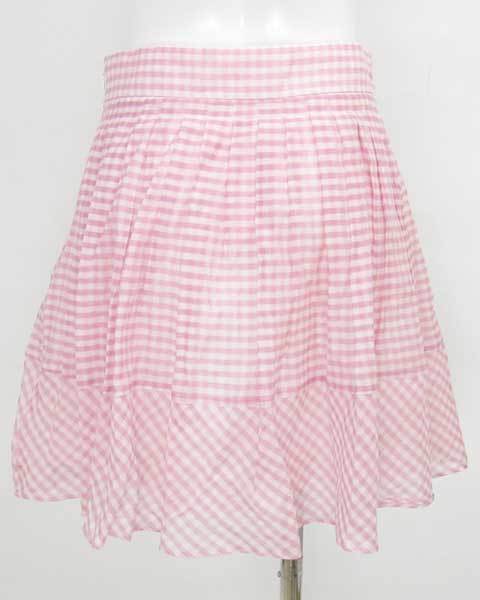 シルク混んで上品な風合いに仕上がったアイテム!ピンクのチェック柄とプリーツデザインが可愛らしいフレアーが入りエアリー感のあるスカートです。