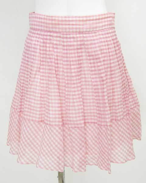 ジルスチュアート ピンク チェック シルク混 プリーツ スカート M