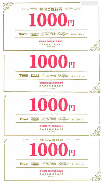 ジャパンクラフトホールディングス株式会社 株主優待券 1000円券x4枚