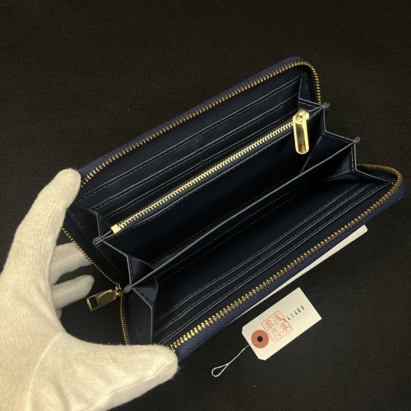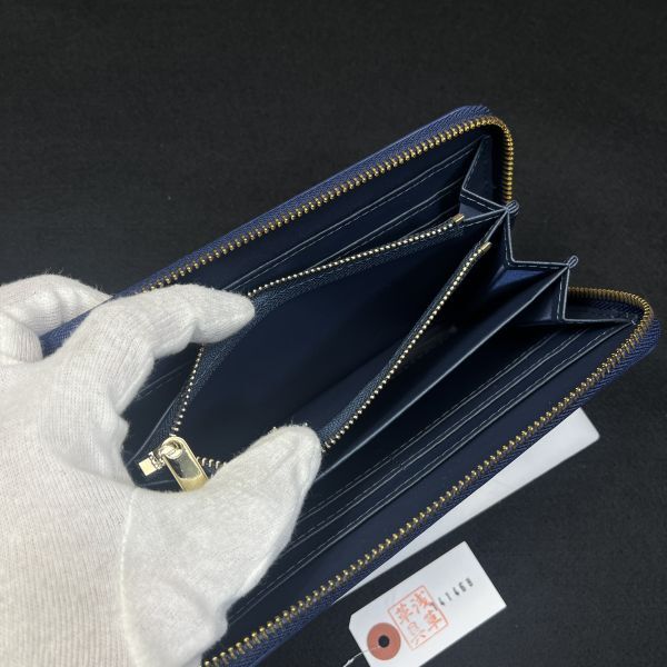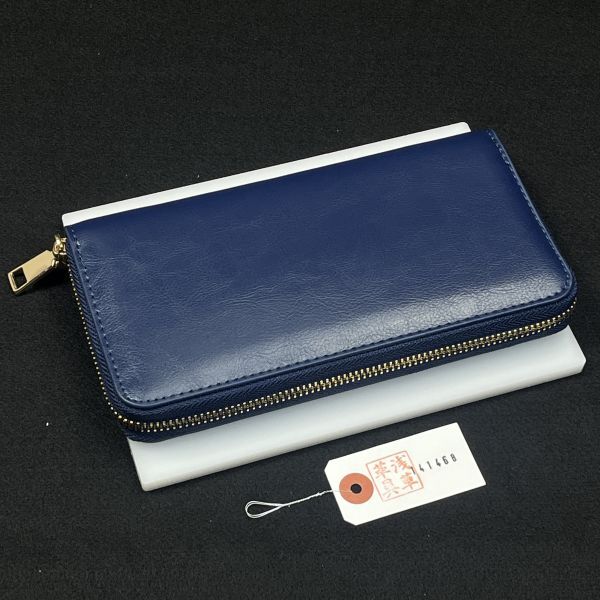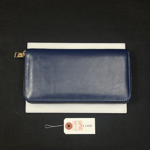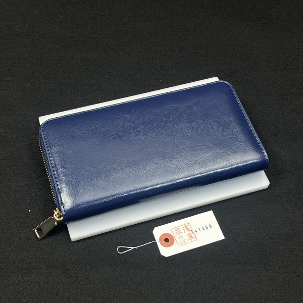 【浅草革具】メンズ 財布 メンズ長財布 ラウンドファスナー 牛革 ヌメ革 1円 ハンドメイド ロングウォレット 新品 未使用 青 ブルー