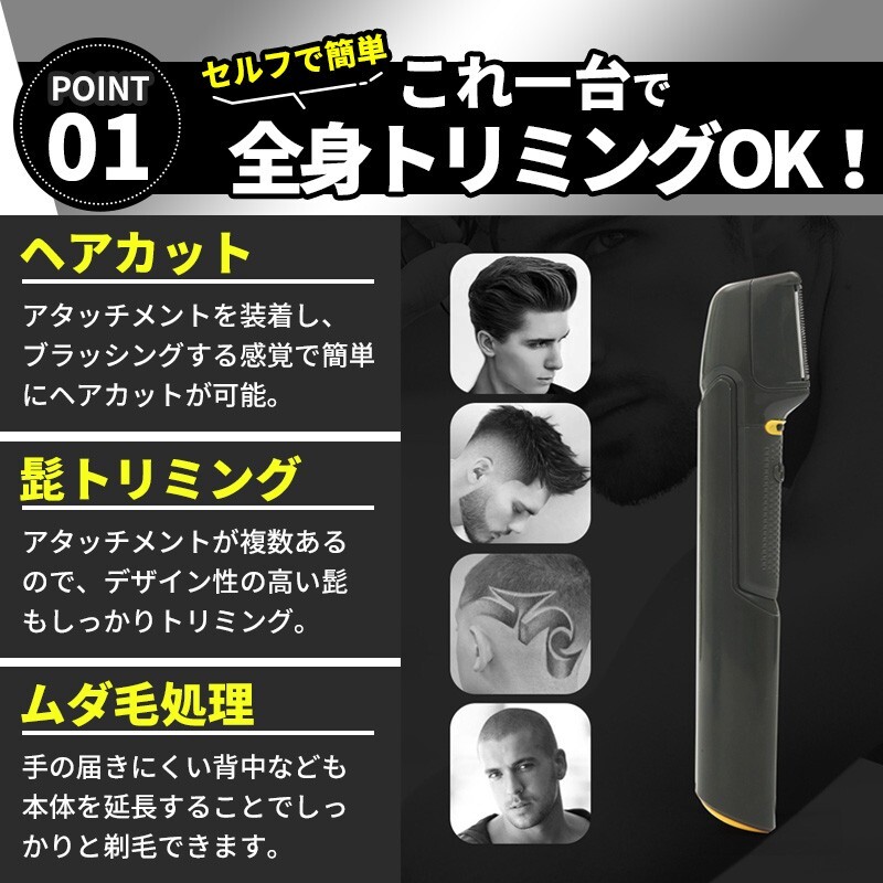 こちらは髪、髭、うなじなどを簡単に整えられる電動トリマーです。