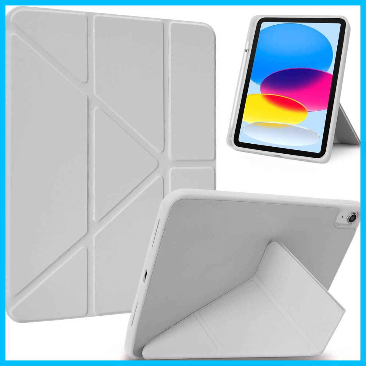 iPad 11世代 A16 / 10世代 ケース 2025 / 2022 11 / 10.9インチ 対応 三つ折りスタンド 横置&縦置可能 ペンシル収納ホルダー付き 軽薄 軽量 オートスリープ機能対応 耐衝撃 (グレー)