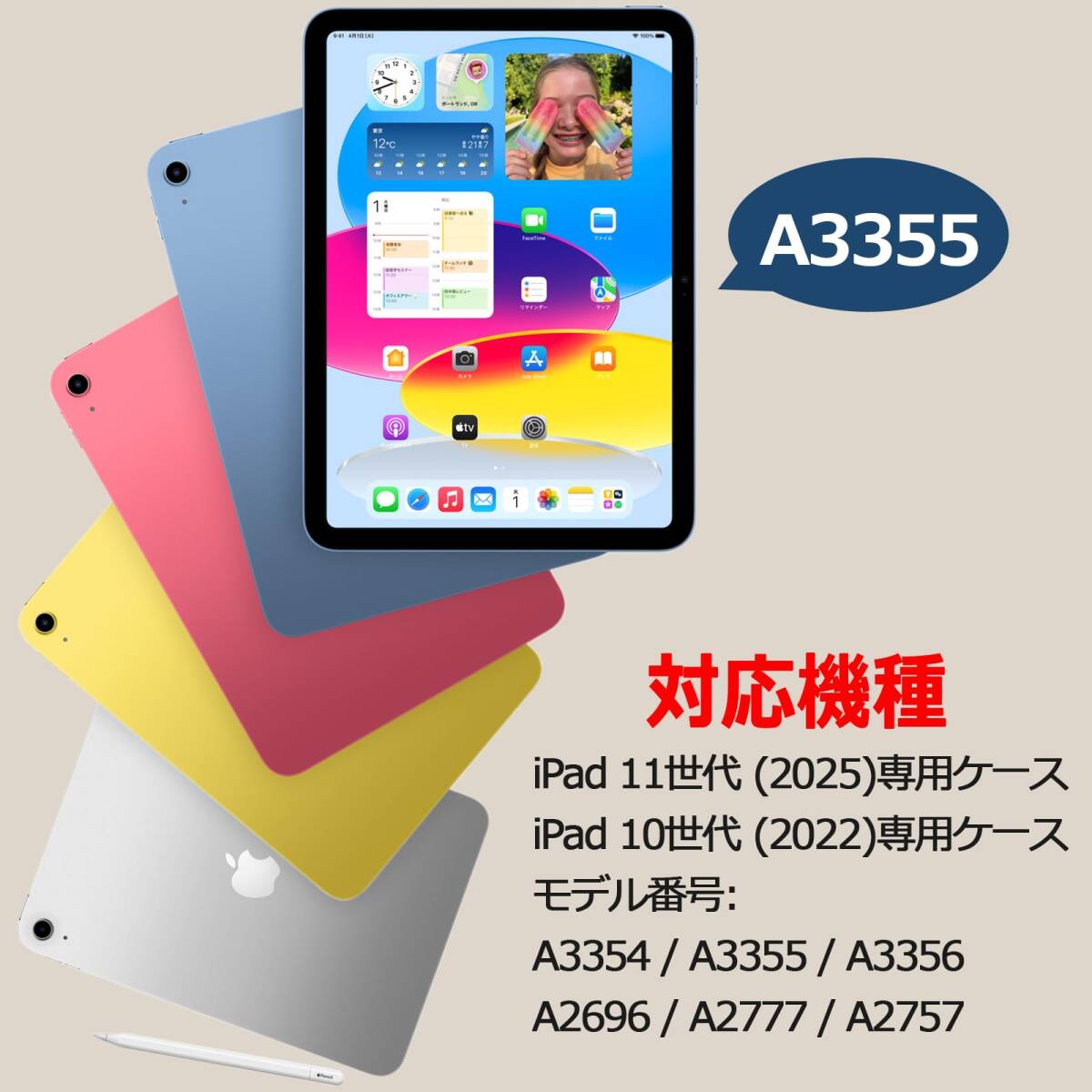 【対応機種】対応iPad 11/10世代 専用 ケースです。対応iPad (A16) 2025発売 A3354/A3355/A3356,対応iPad (10世代) 2022発売 A2696/A2757/A2777。ご注意:ご購入する時に手元のデバイスの裏面に記載しているモデル番号をご確認ください)