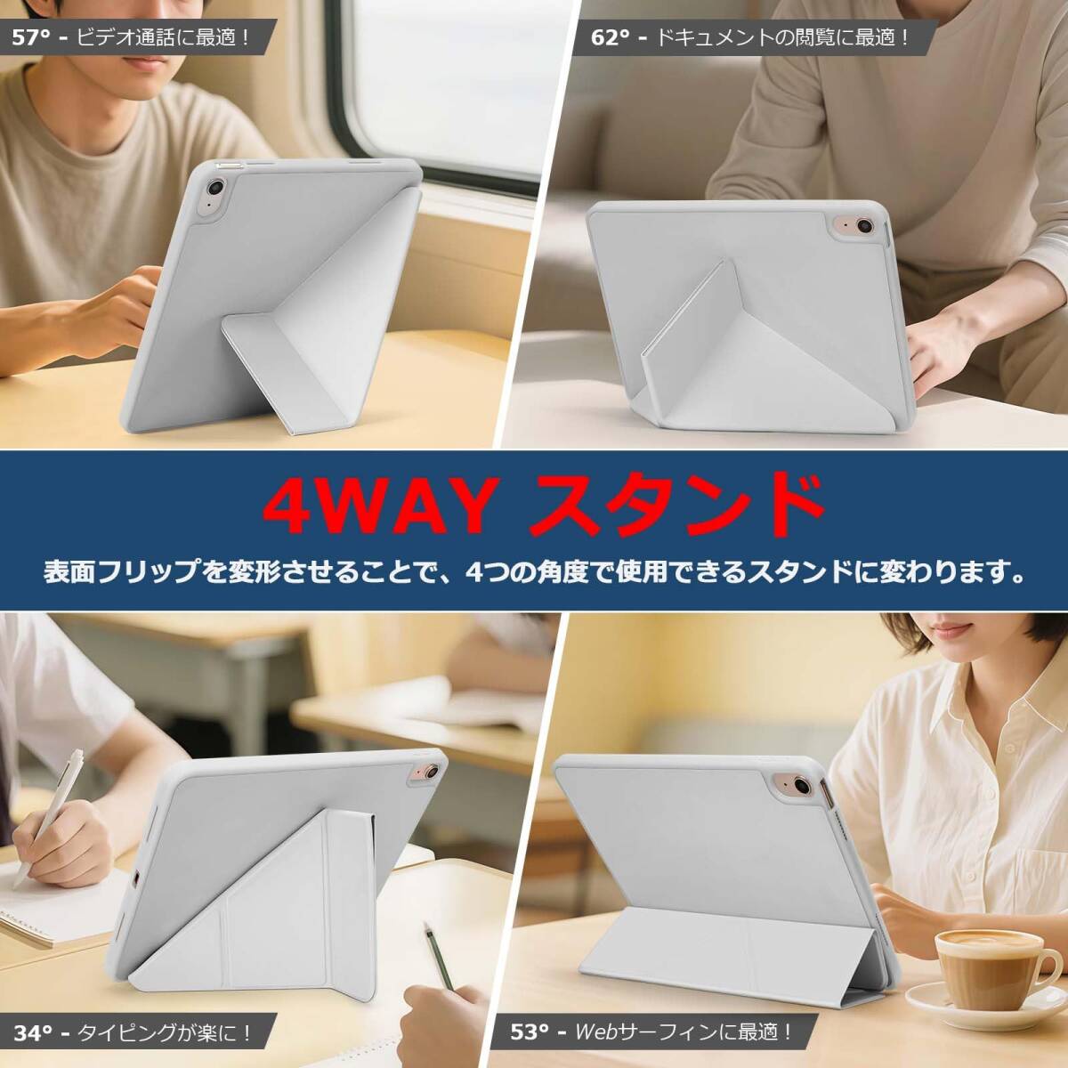 【便利な操作】対応iPad 11/10世代 カバーは多機能スタンドタイプで、4つの角度での使用をサポートします。横向きに立てかけて、動画視聴、読書、WEBなど様々なシーンに便利なiPad 11/10世代 ケースです。また、充電ケーブル、イヤホン、カメラ、電源ボタンなどに対応した精密な穴が施されており、iPad ケースを装着したままタブレット本体の各操作が可能です。