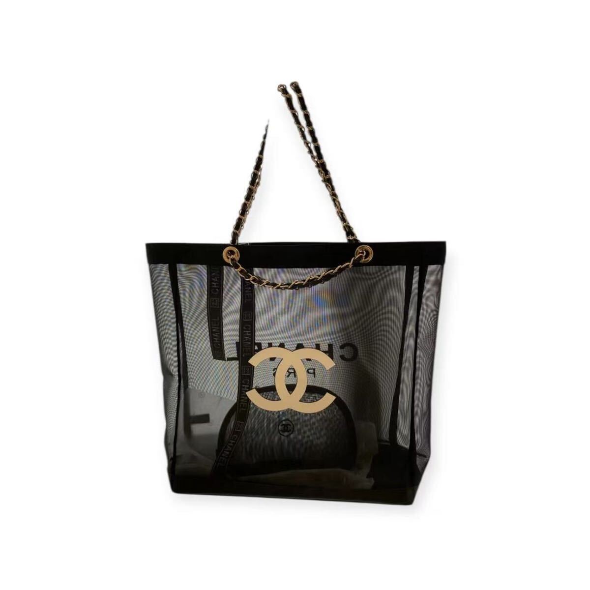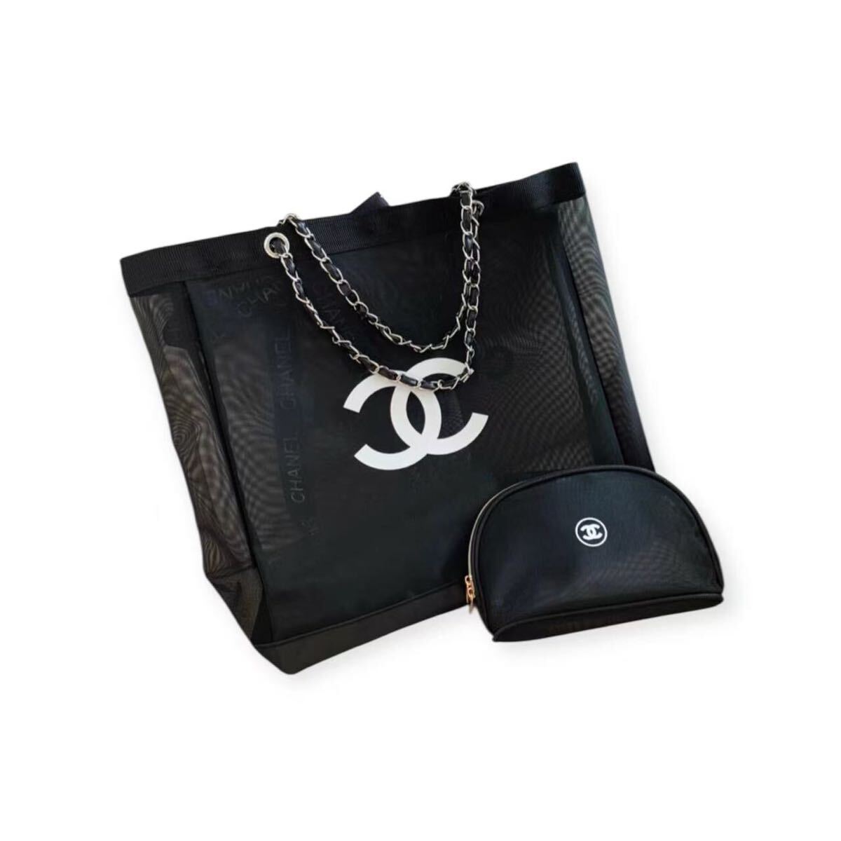 ブラック メッシュ トートバッグ & メイクアップポーチ