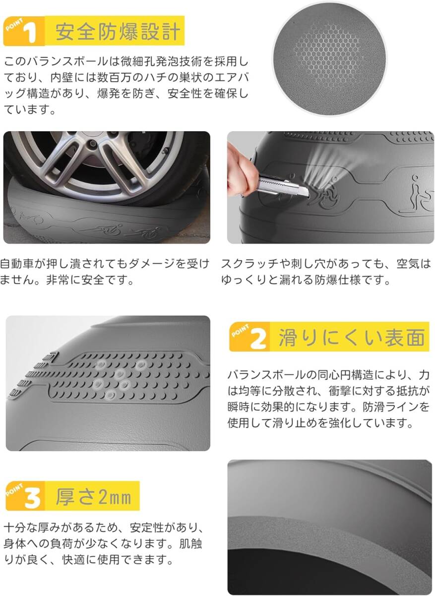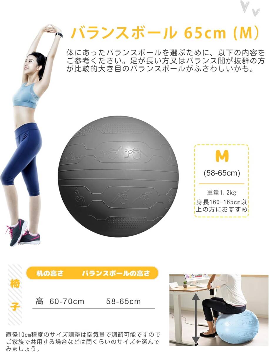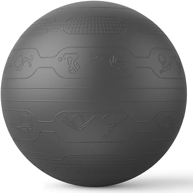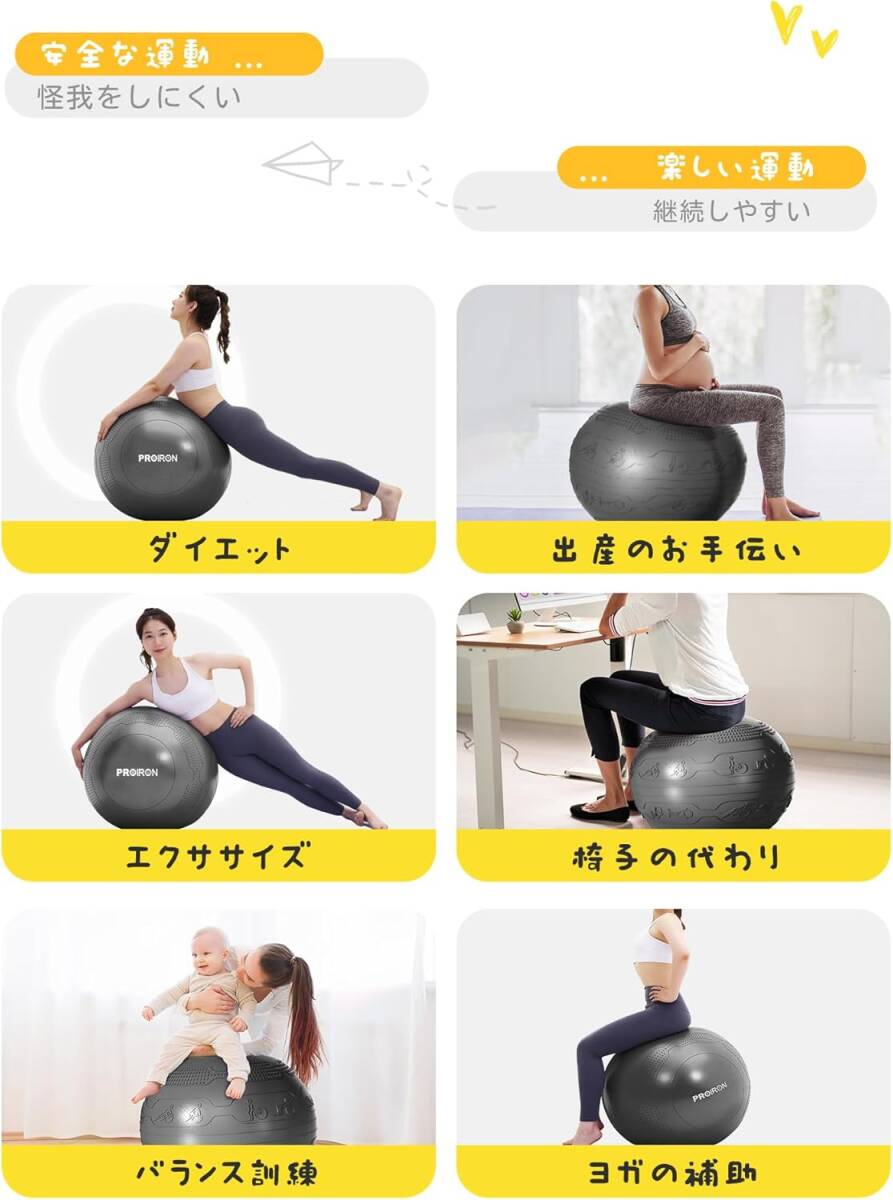 ブラック色 耐荷重300KG PROIRON バランスボール 65cm ばらんすぼーる トレーニングガイドパターン付き 厚い ジムボール