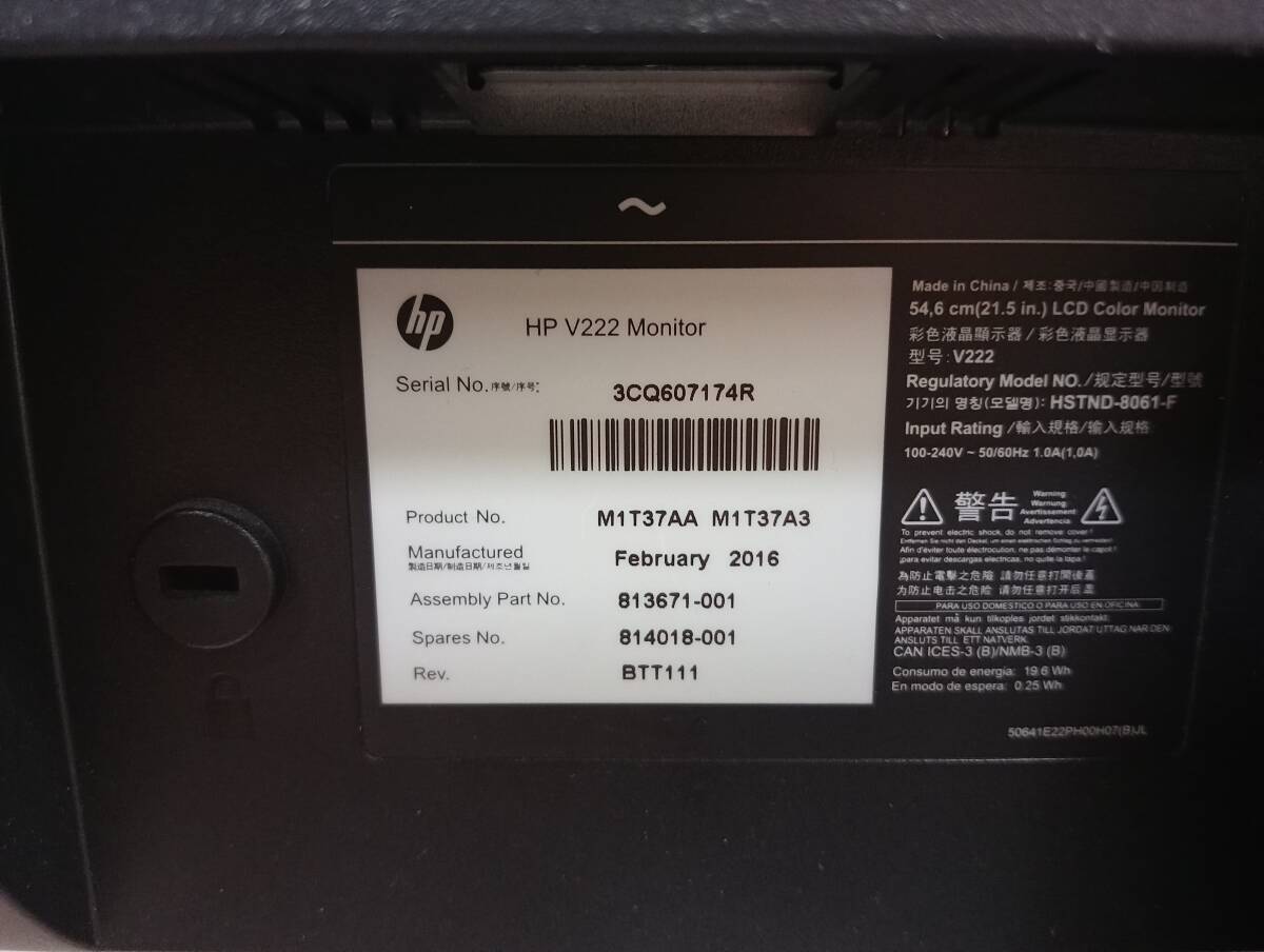 HP V222 Monitor 液晶モニター 21.5inchWide/1920x1080/VGA/DVIの出品です。