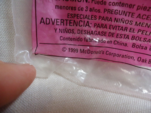 米国にて、購入しました。1999年製。米国マクドナルドで、出たハッピーミールトイの1点新品です。プラスチック・ゴム製。首・両手、動きます。画像撮影のため、開封しましたので、新品です。サイズは、縦約11.3センチです。24時間以内に、お手続き入力後、期限内にかんたん決済、出来きる方のみ、ご入札をお願い致します。この商品は、1点物です。 2512 ※※発送方法・送料は、特定記録付き定形外郵便(追跡可能・補償無し)ですと、500円又は、レターパックプラス郵便(追跡可能・手渡し配達・補償無し)ですと、600円又は、簡易書留郵便(追跡可能・手渡し配達・補償有り)ですと、640円です。※※ ☆★★★★★☆送料は、変わりますが、何点でも、同梱包可能です。数点落札されましたら、まとめて取引を、選択お願いします。☆★★★★★☆