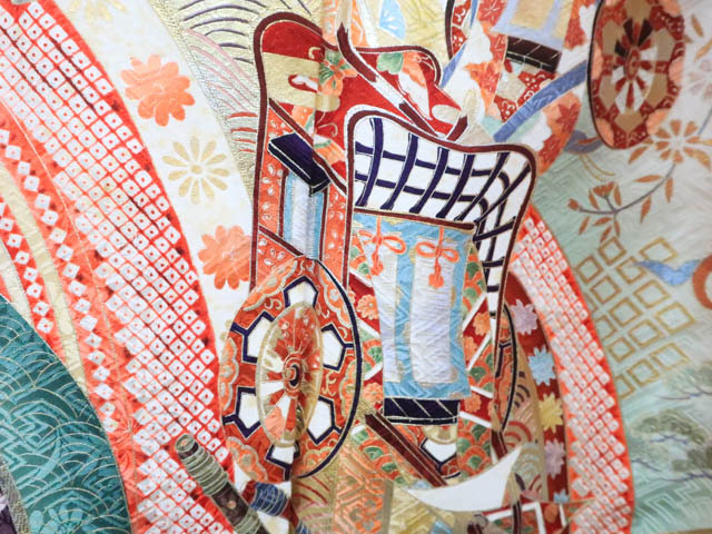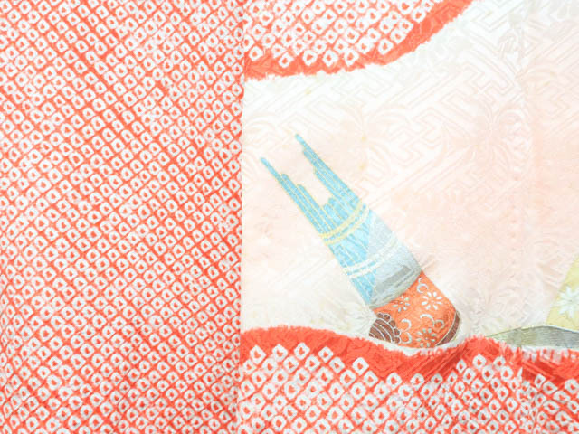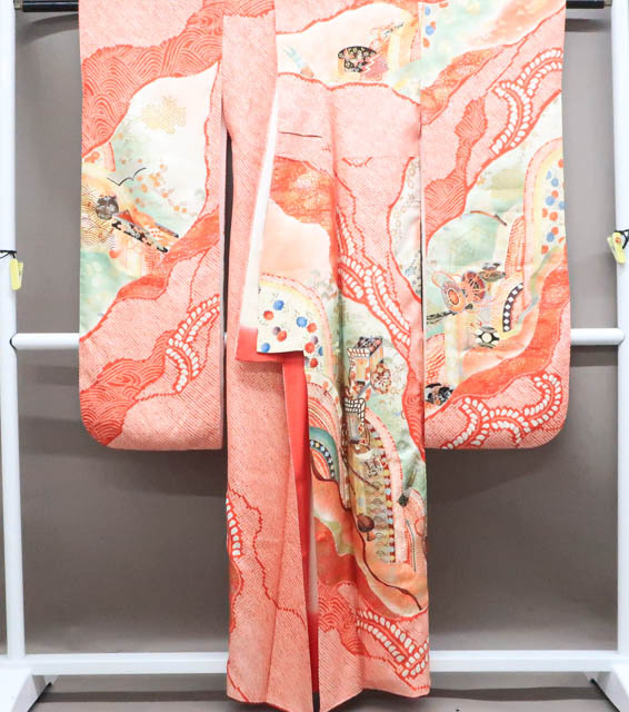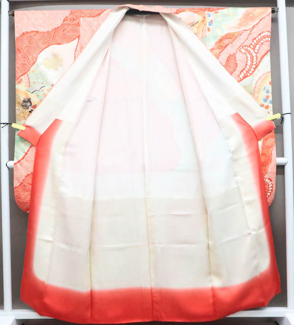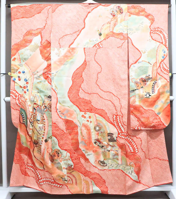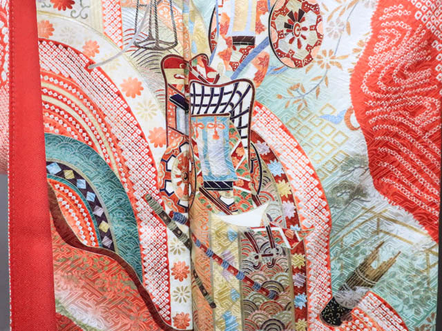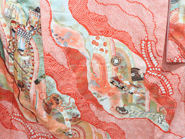 リサイクル商品のため、全体所々しみと衿汚れがございますが着用可能なお品です。 地色は 赤です。 1枚目の画像が近いお色かと思われます。 素材は正絹です。 |