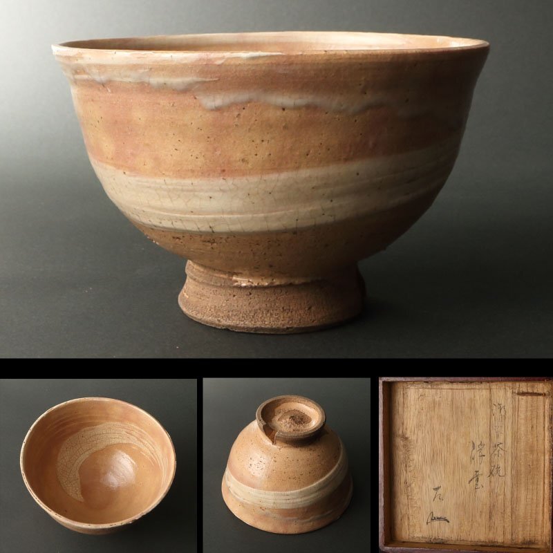 委託HK◇時代 古萩茶碗 「浮雲」時代箱 ※仕覆添え(茶道具 陶磁器 陶芸 萩焼 古萩 刷毛目 茶陶 抹茶碗 稽古 茶事 茶席 茶の湯 古物 )