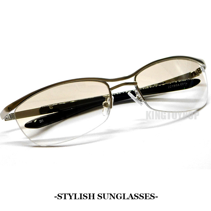 送料無料 オラオラ系 サングラス メンズ UVカット メタル ナイロール ハーフリム 伊達メガネ 伊達眼鏡 シャープ クリアハーフミラー 新品☆